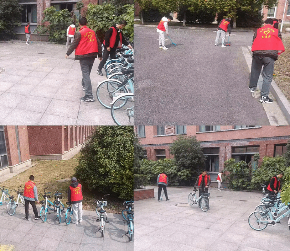 清晨,身穿“红马甲”的青年志愿者们忙碌在校园各个角落,他们听从统一安排、积极参与、默契配合,拿各式清洁工具,清理树枝落叶、宣传栏贴纸、地面垃圾等等。经过一段时间的“奋战”,校园焕然一新。志愿者们共同维护了学校公共环境卫生。