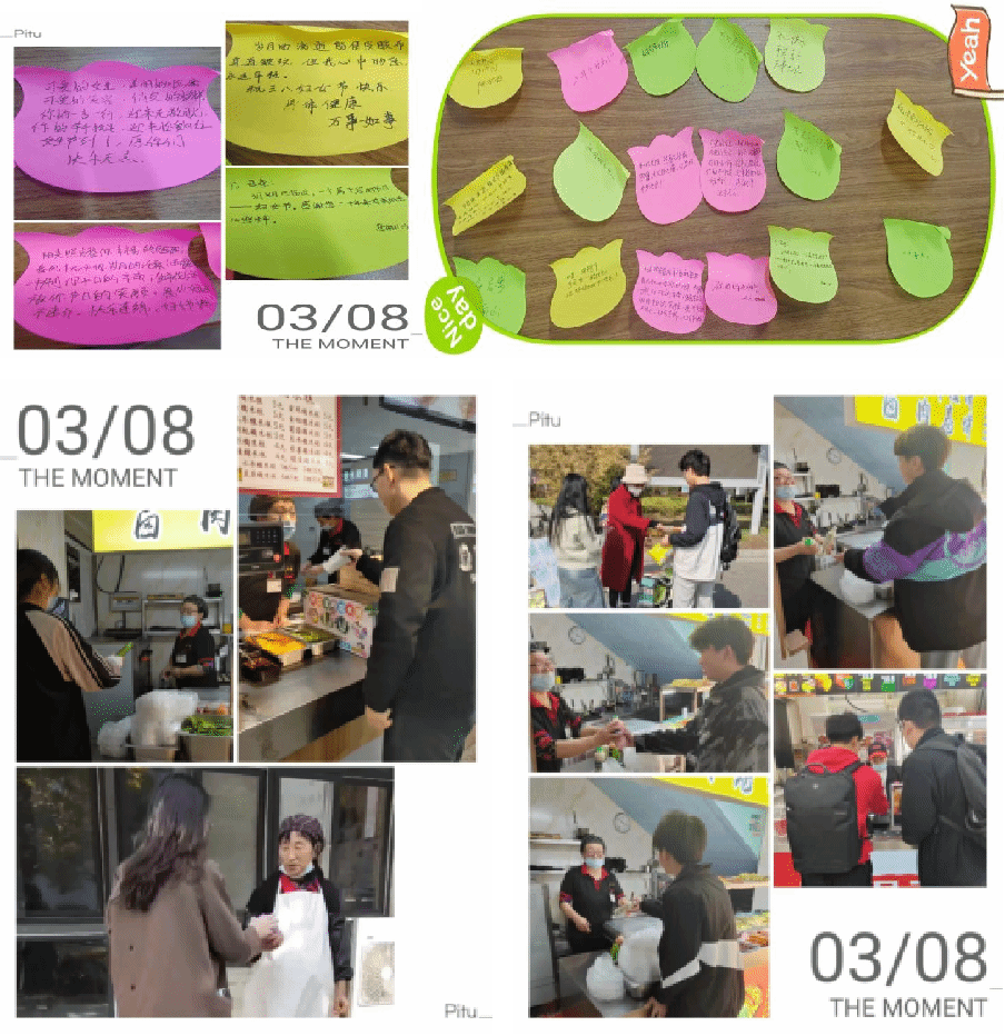 食堂、环卫和宿管阿姨辛勤的背影,努力工作的模样,无一不彰显了新时代女性独特的魅力。他们纷纷表示:能收到这样的贺卡和小礼物非常惊喜、非常地感动,学生和自己的孩子一样,善良又温暖。带着学生们的祝福,定将立足本职岗位,为学校发展贡献自己的一份力量!