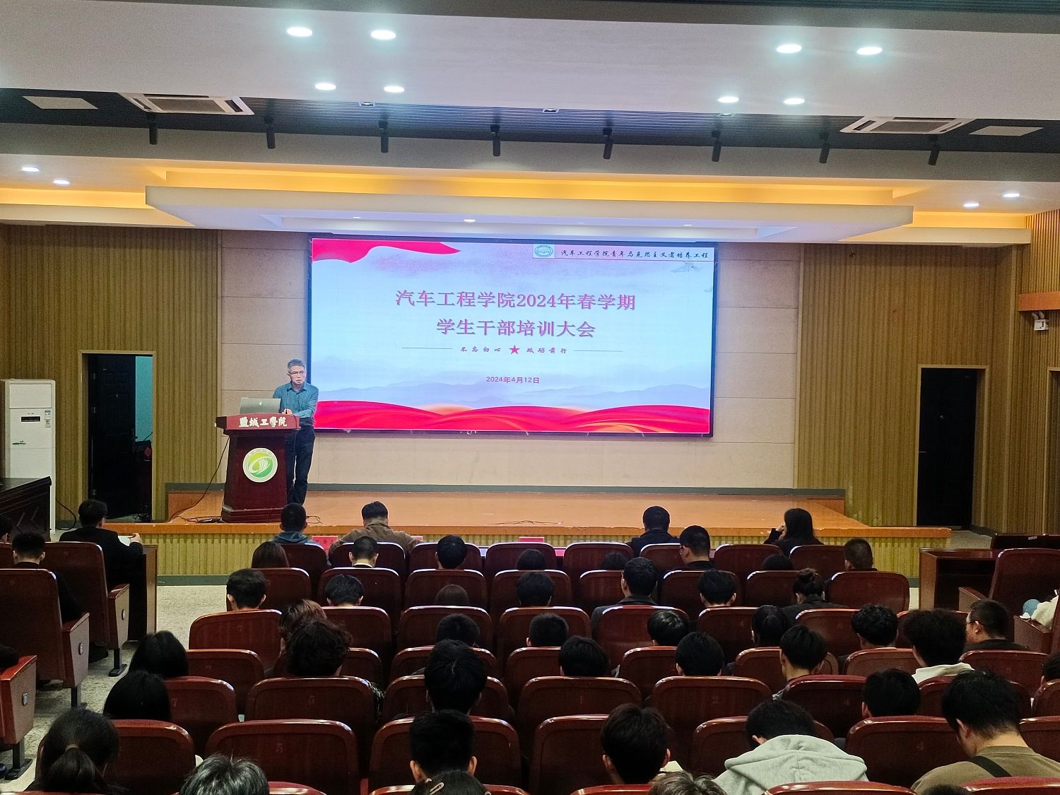 为进一步加强学生干部队伍建设,全面准确地掌握学生干部的工作情况,提升团委学生会的凝聚力、向心力、服务力,4月12日晚,汽车工程学院在南校区机械馆报告厅召开团委学生会阶段性述职评议会暨培训大会。学院党总支书记杨军、学工办和团委负责老师、全体专职辅导员出席,学生会主席团成员、各部门负责人及全体成员参加。会议由学生会主席徐宸阳主持。