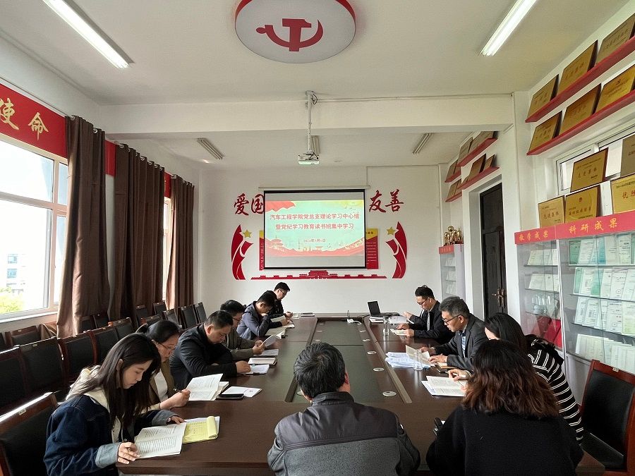 5月6日上午,汽车工程学院开展党纪学习教育专题读书班集中学习,学院党总支书记杨军主持会议并作领学发言,学院党总支理论学习中心组全体成员参加学习。