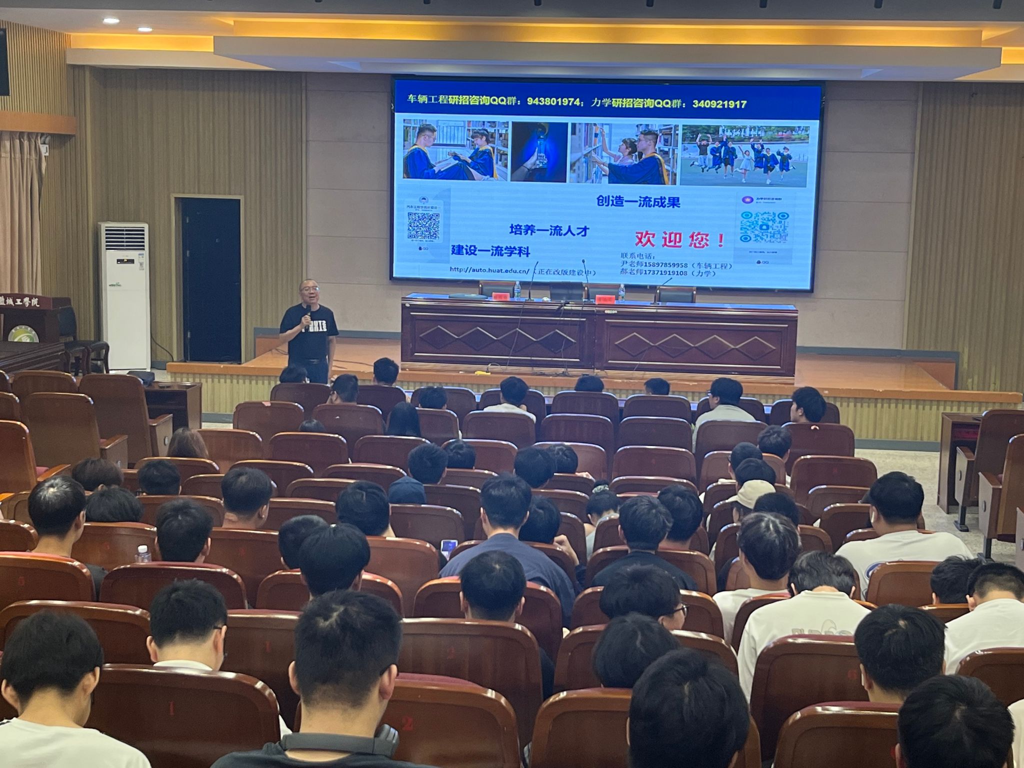 韩同群结合自身学习经历介绍了汽车工程学院车辆工程专业、力学专业硕士招生及就业情况。最后,老师们与参会学生进行了答疑互动,解答了研究生招生政策等相关问题。