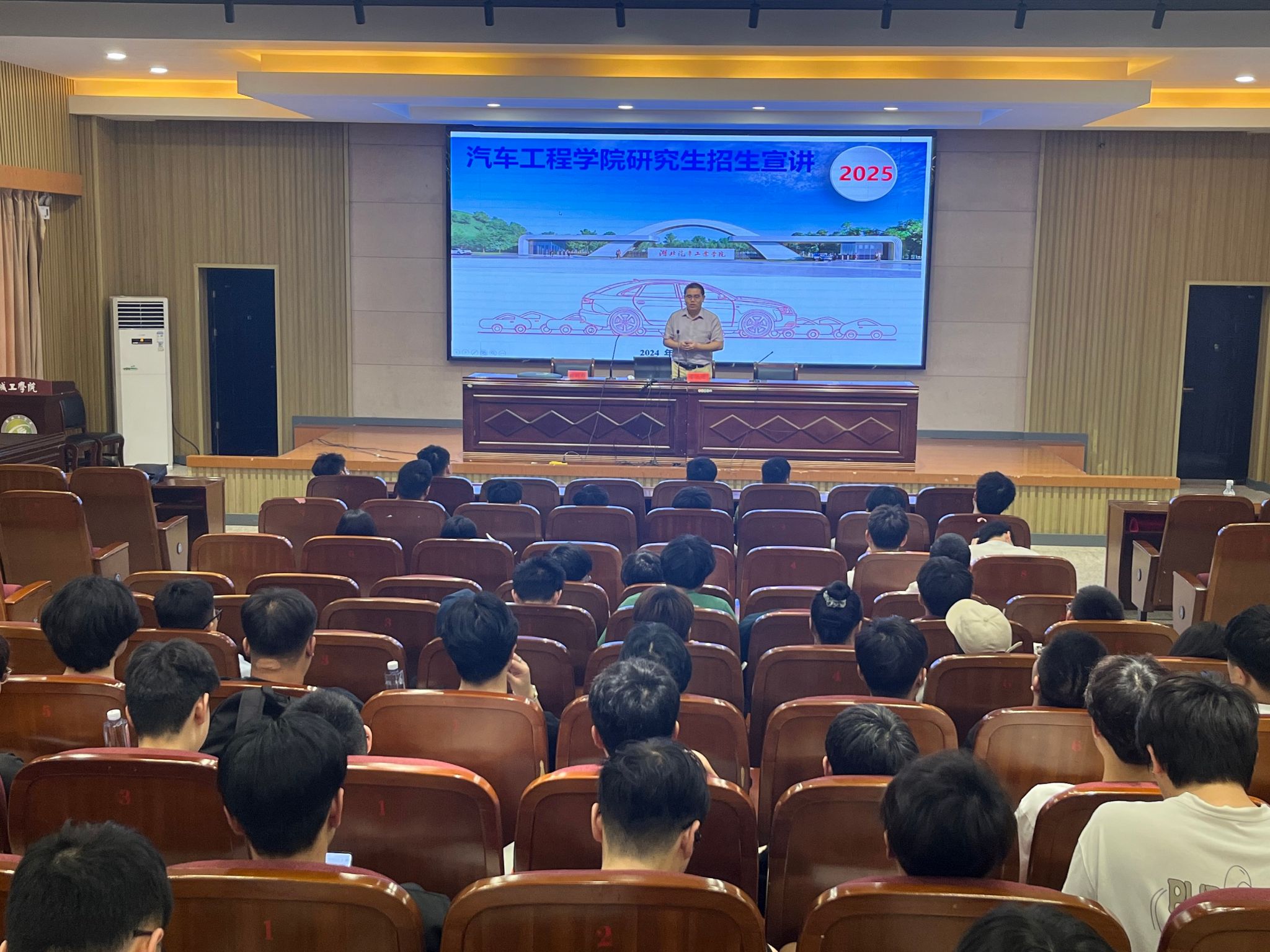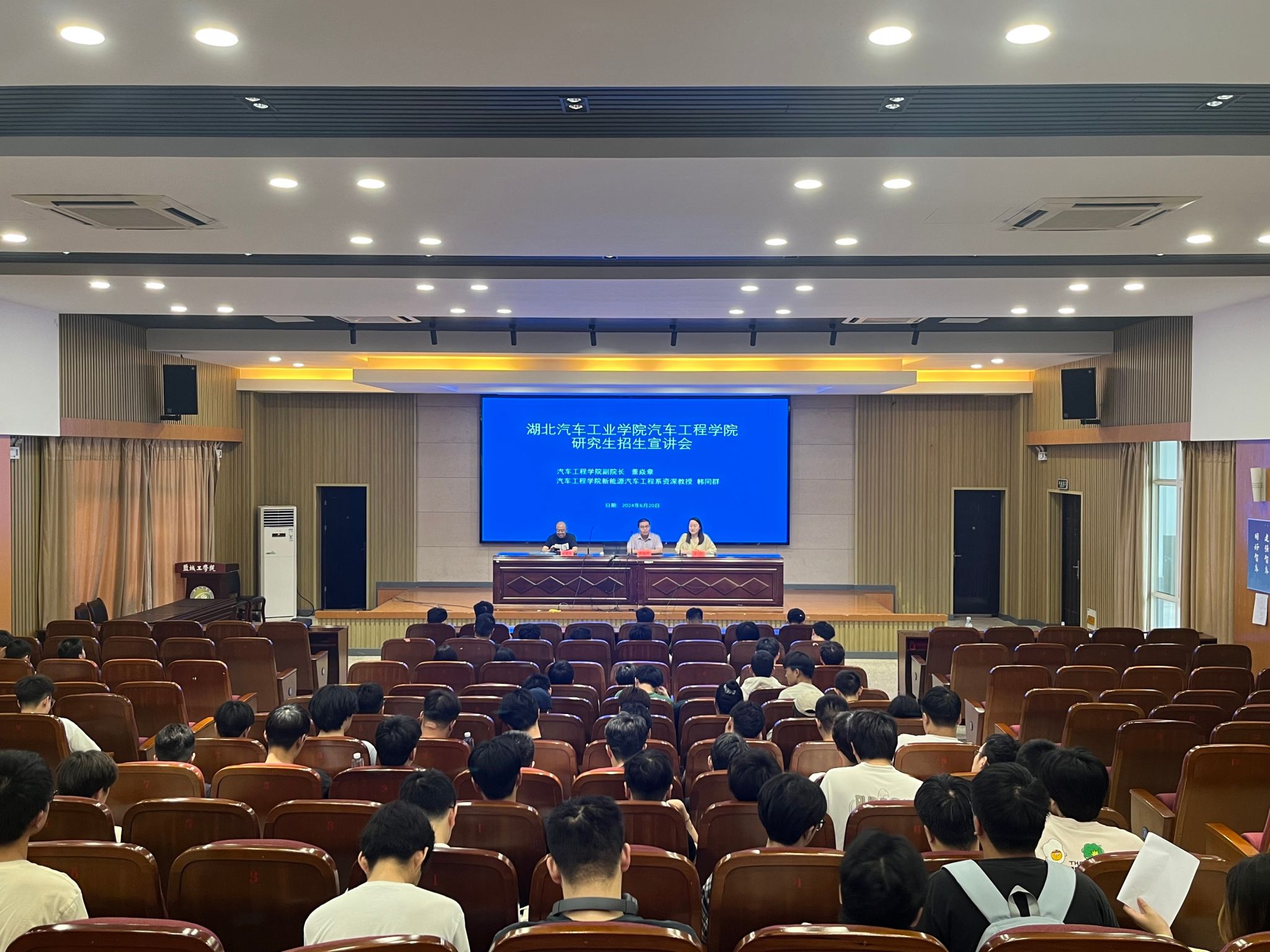 为进一步贯通学校本硕人才衔接培养渠道,助力更多优秀学子圆梦升学,6月20日上午,湖北汽车工业学院汽车工程学院副院长董焱章、汽车工程学院新能源汽车工程系教授韩同群一行前来汽车工程学院开展2025届硕士研究生招生宣讲活动,本次宣讲会在机械馆报告厅召开,汽车工程学院大三辅导员姚源及150多名备考学生参加了会议,会议由学院党总支副书记姜华主持。