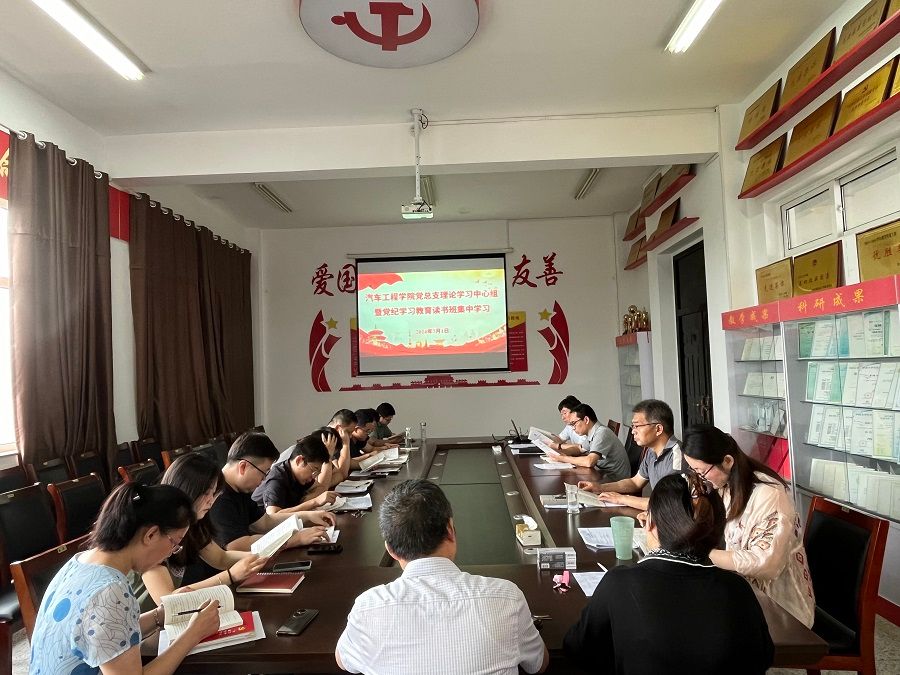 7月1日上午,在希望大道校区机械馆A323会议室,汽车工程学院党总支理论学习中心组举行党纪教育读书班暨党总支理论学习中心组集体学习会,围绕《中国共产党纪律处分条例》,习近平总书记关于全面加强党的纪律建设的重要论述,习近平总书记在中共中央政治局第十五次集体学习时、在重庆考察时、在山东考察时的重要讲话精神等开展集体学习,并就“用党规党纪校正思想和行动,真正使学习党纪的过程成为增强纪律意识、提高党性修养的过程,推动党纪学习教育走深走实、见行见效”进行交流研讨。学院党总支书记杨军主持,党纪教育读书班全体成员参加。
