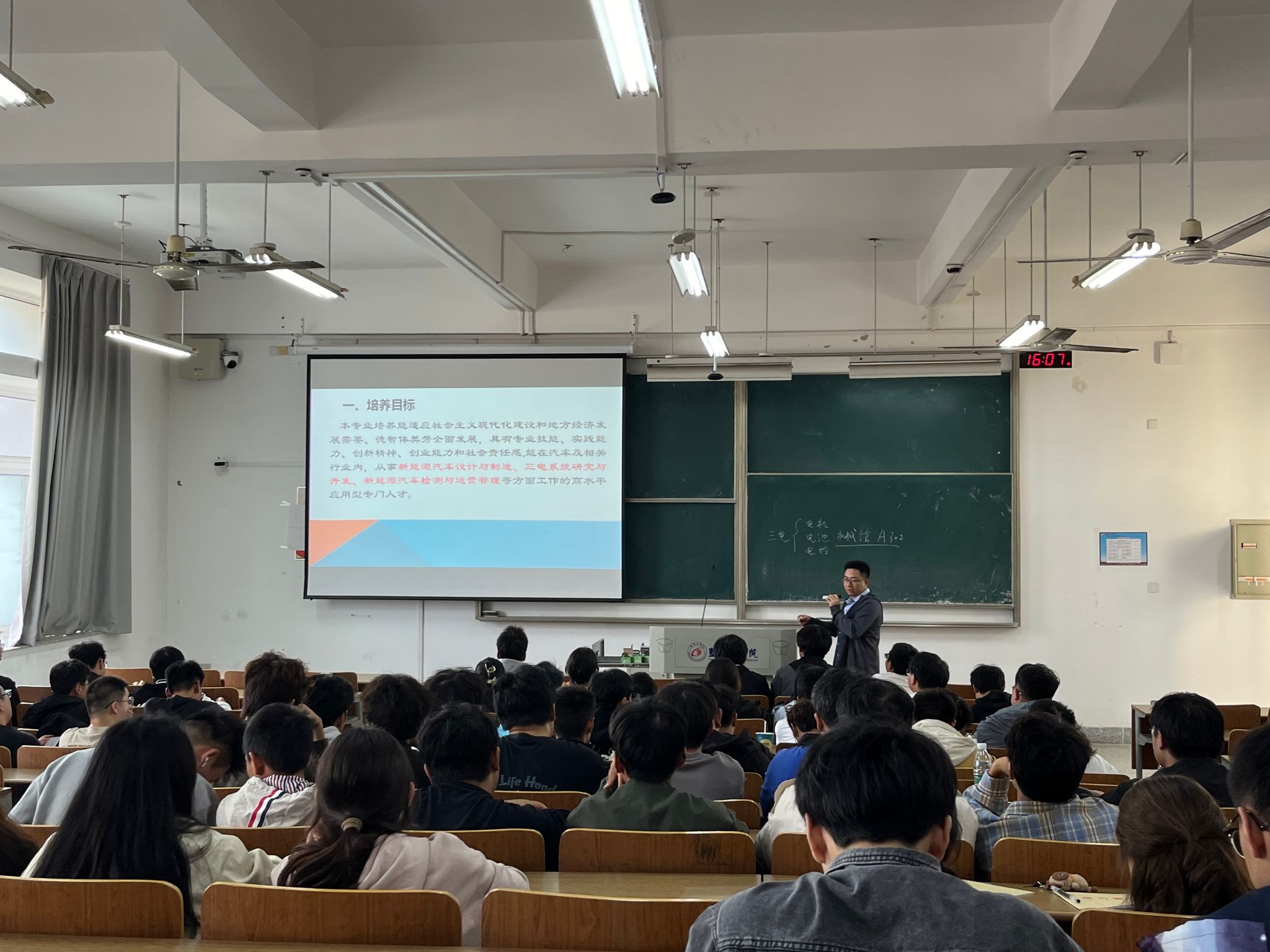 为帮助2024级新生快速融入大学生活,明确学习目标,科学规划学业发展,提高专业认知水平,10月9日下午,汽车工程学院联合“云泉”一站式社区举办“信仰公开课”系列教育之2024级新生“大学第一课”专业教育活动,车辆工程专业系主任严军、能源与动力工程专业系主任陈玉炜、汽车服务工程专业系侯全会老师和新能源汽车工程专业系主任郭俊担任主讲,新生辅导员及2024级全体新生参加。