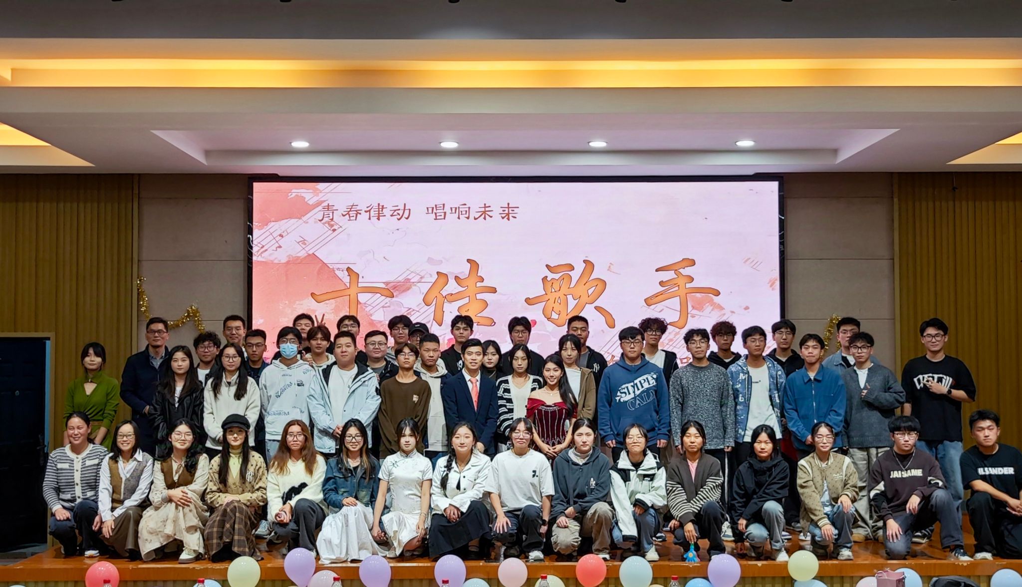 为热烈庆祝中华人民共和国成立75周年,进一步丰富校园文化,展现大学生良好的精神风貌和青春活力,10月20日晚汽车工程学院携手“云泉”一站式社区,在南校区机械馆报告厅隆重举办“信仰公开课”系列教育之“青春律动,唱响未来”十佳歌手比赛。比赛邀请学院党总支副书记丁德惠、校团委实践创新部主任徐潘虹、校团委组宣部主任刘亭亭以及学院学工办、团委负责老师、新生辅导员、大艺团学生代表等担任比赛评委,15名选手参加比赛,全体大一新生现场观看比赛。