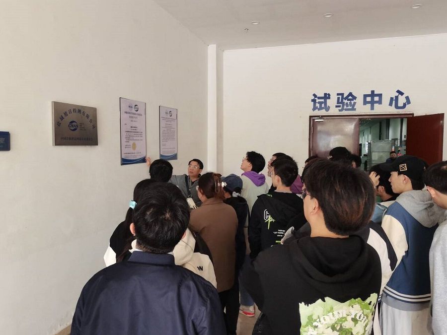 在参观完生产车间后,同学们在工作人员的带领下来到了企业的实验室,走进实验室之前同学们便在工作人员口中得知该实验室是CNAS认可实验室,满足《检测和校准实验室能力的通用要求》。工作人员对于实验室中的仪器和设备做出了详细的讲解,重点介绍了柴油机排放标准测试室和噪音实验室,同时在企业老师的指导下同学们完成了美国EPA标准下的通用汽油机六工况排放试验。通过本次实践,同学们对本专业有了进一步的了解,深入认识到了内燃机发展过程的艰辛,并明确了未来学习方向和奋斗目标。