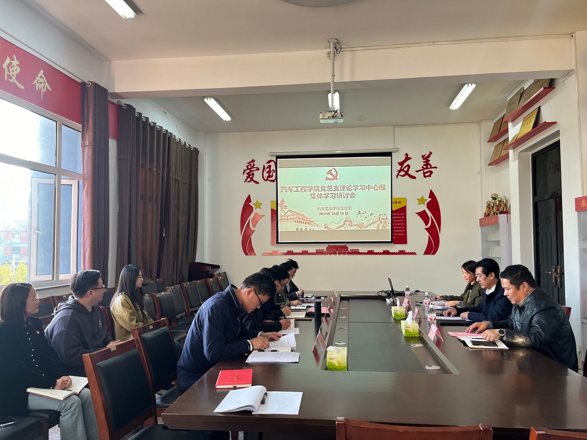 10月30日下午,汽车工程学院党总支理论学习中心组在机械馆A323会议室举行集体学习研讨会,学习研讨习近平总书记关于教育的重要论述、党中央和省委关于应用型本科高校建设的决策部署以及习近平总书记关于党的自我革命的重要思想。