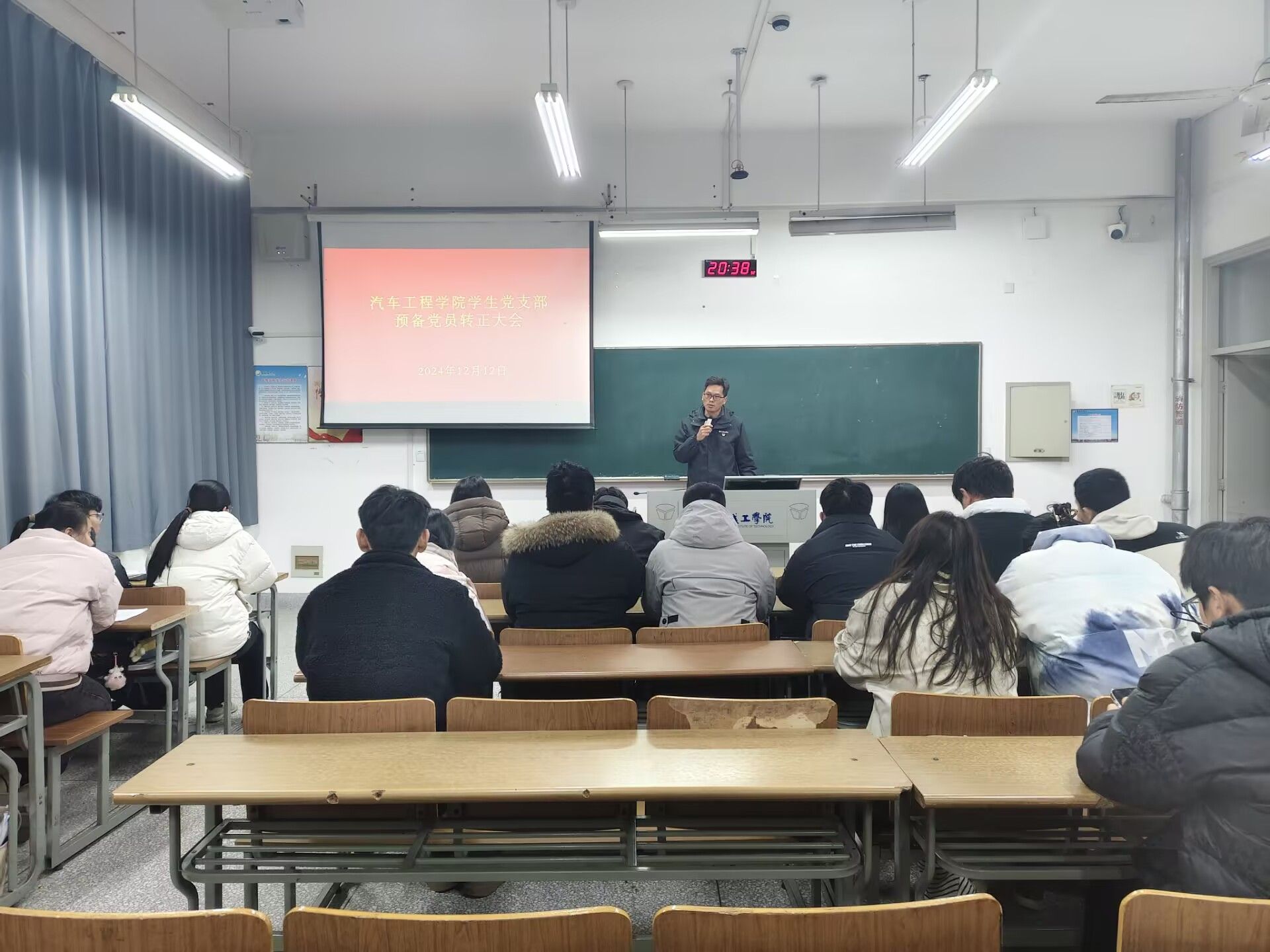 12月12日晚,在南校区博学楼D110,汽车工程学院学生党支部召开预备党员转正大会,会议由支部书记孙雅主持,16名正式党员、37名预备党员参加。