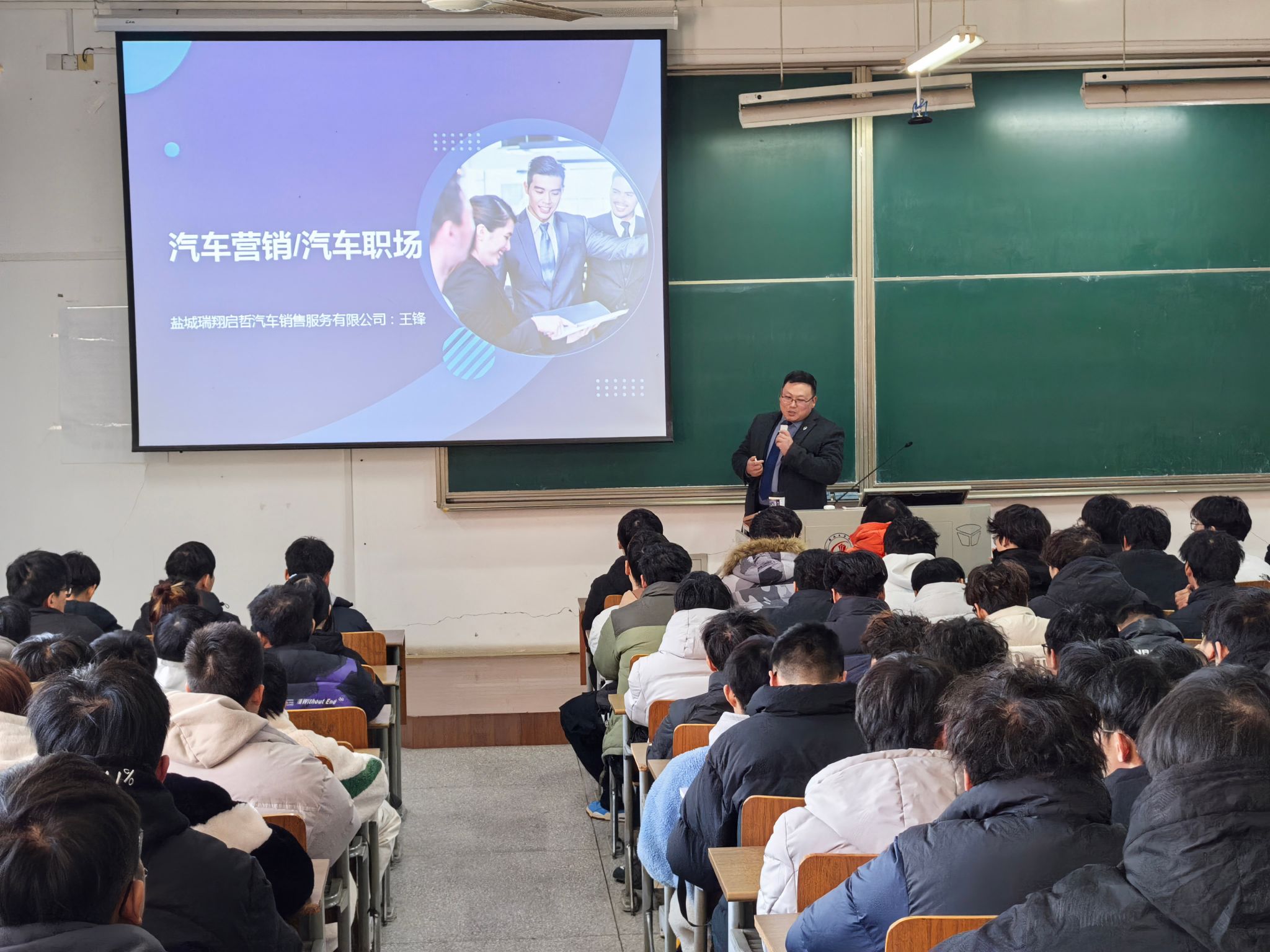 为提高人才培养质量、加强学校与企业合作、促进产教融合深入开展,12月16日下午,学院邀请盐城瑞翔启哲汽车销售服务有限公司销售经理王锋,在博学楼D115为学生讲授汽车营销学。