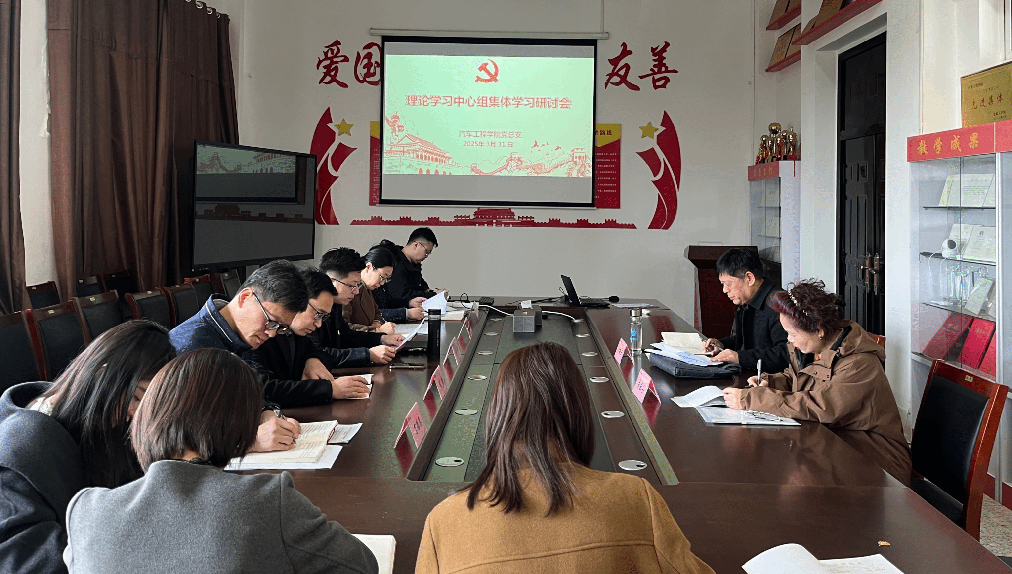 3月31日上午,汽车工程学院党总支理论学习中心组在机械馆A323会议室举行2025年春学期第二次集体学习研讨会,学习研讨习近平总书记关于巡视工作的重要指示精神、习近平总书记重要文章《促进高质量充分就业》以及2025年全国教育工作会议精神。校党委第三巡学旁听组组长刘雨龙、副组长韦春华旁听指导。汽车工程学院党总支书记陈青主持,汽车工程学院党总支理论学习中心组全体成员参加。
