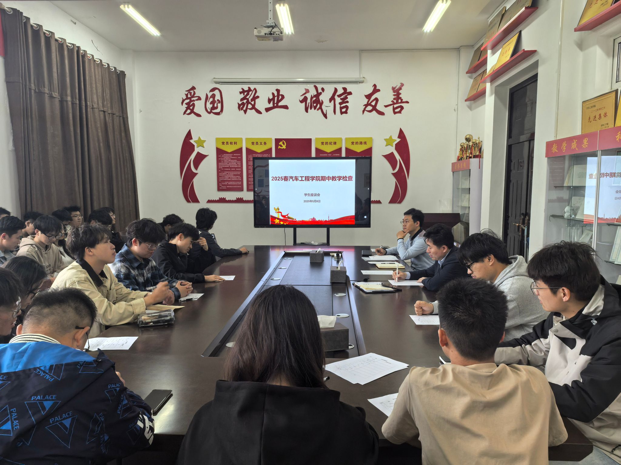 2025年5月8日,汽车工程学院于机械馆A323会议室召开学生座谈会。会议由教学副院长郑竹安主持,教科研办公室主任徐忠华、副主任倪兴雅及大二至大四各班班长、学习委员共59名学生代表参会,围绕教学安排、学习生活保障等议题展开深入交流。