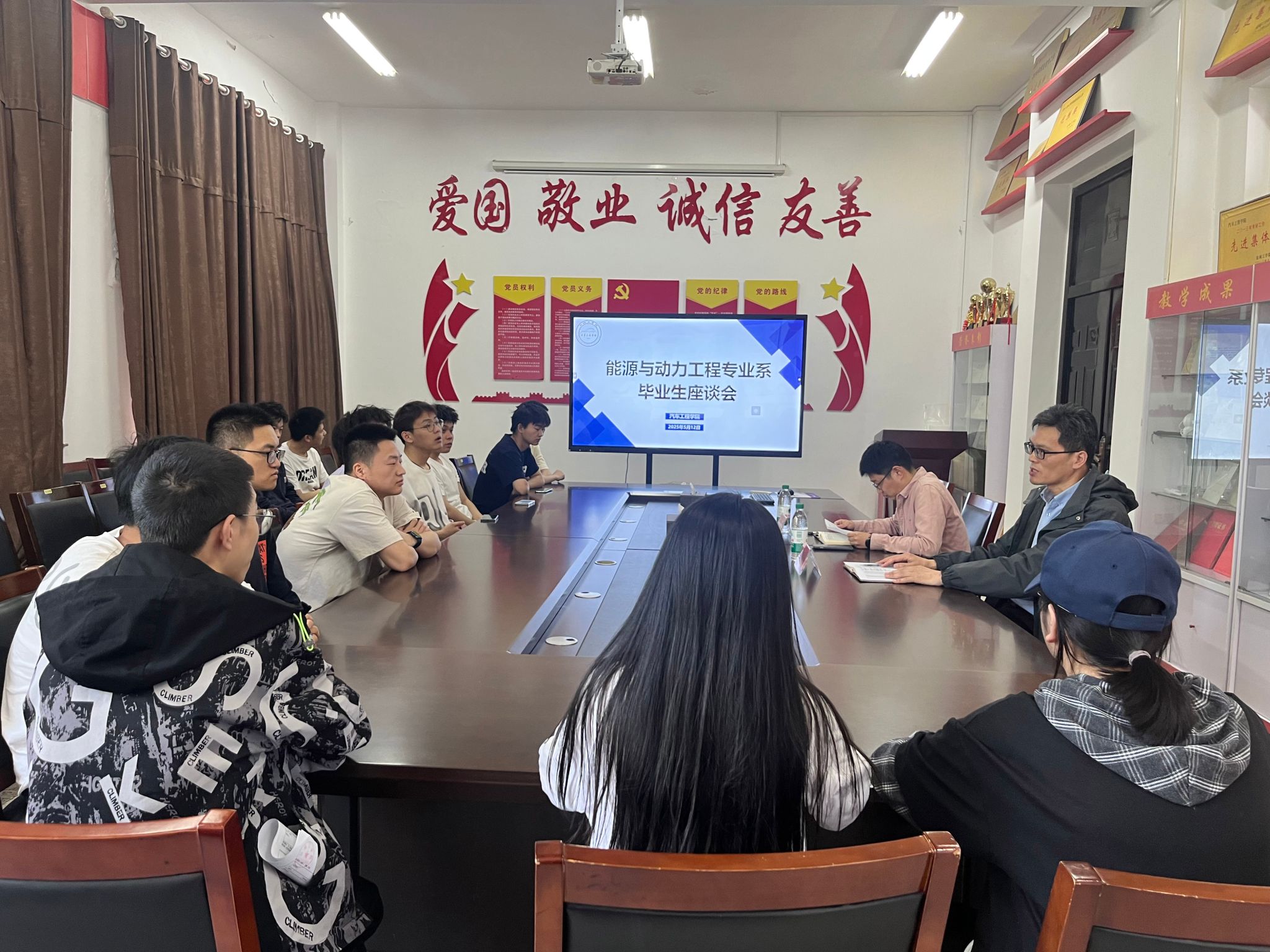 5月12 日下午,汽车工程学院在机械馆 A323 会议室召开能源与动力工程专业系毕业生座谈会。学院党总支副书记丁德惠、专业系主任陈玉炜、毕业班辅导员姚源出席,能动班二十余名学生代表参与本次座谈。
