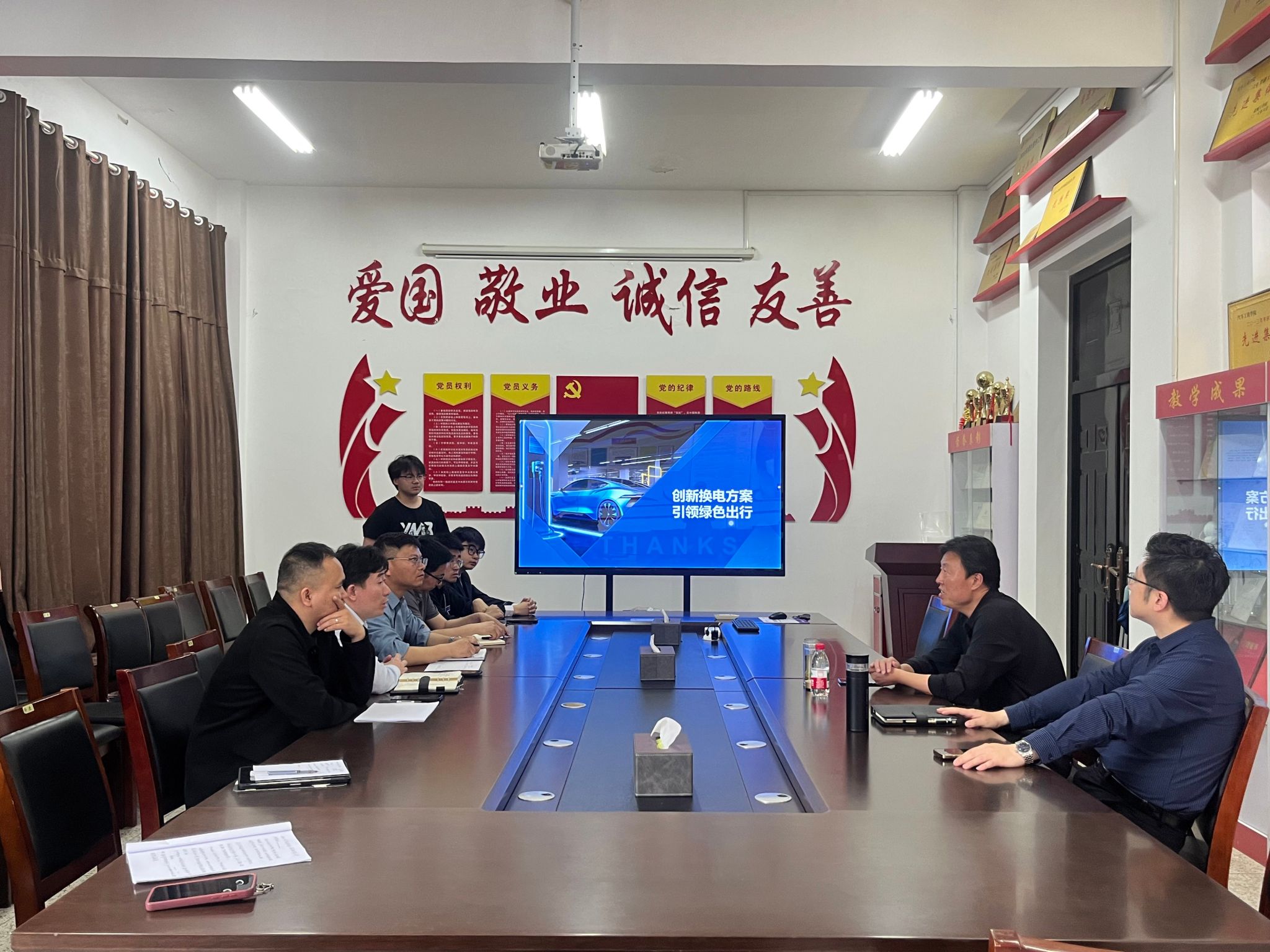 会议伊始,“柔性化智造工作站——工业制造现场一站式解决方案”项目团队通过动态仿真,呈现了可重构智能生产线的技术创新;“绿行智换——低速电动车模块化快换电池包服务”项目团队则通过场景化演示,展现了其自主研发的4分钟极速换电系统。两组汇报均采用“痛点分析-解决方案-价值创造”的逻辑框架,突显项目社会价值与技术优势。