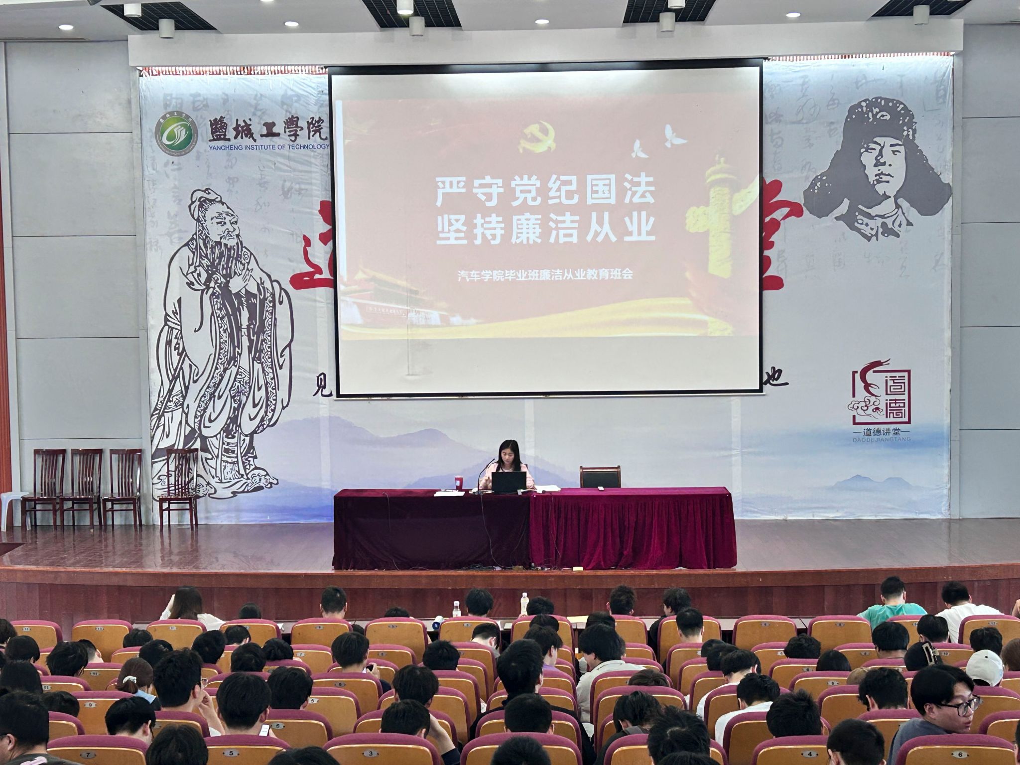 为切实加强毕业生职业素养教育,筑牢廉洁从业思想防线,汽车工程学院于5月16日下午,在南校区博学楼五四报告厅组织开展2025届毕业生廉洁从业专题教育讲座。讲座由毕业班辅导员姚源主讲,学院全体25届毕业生参会。