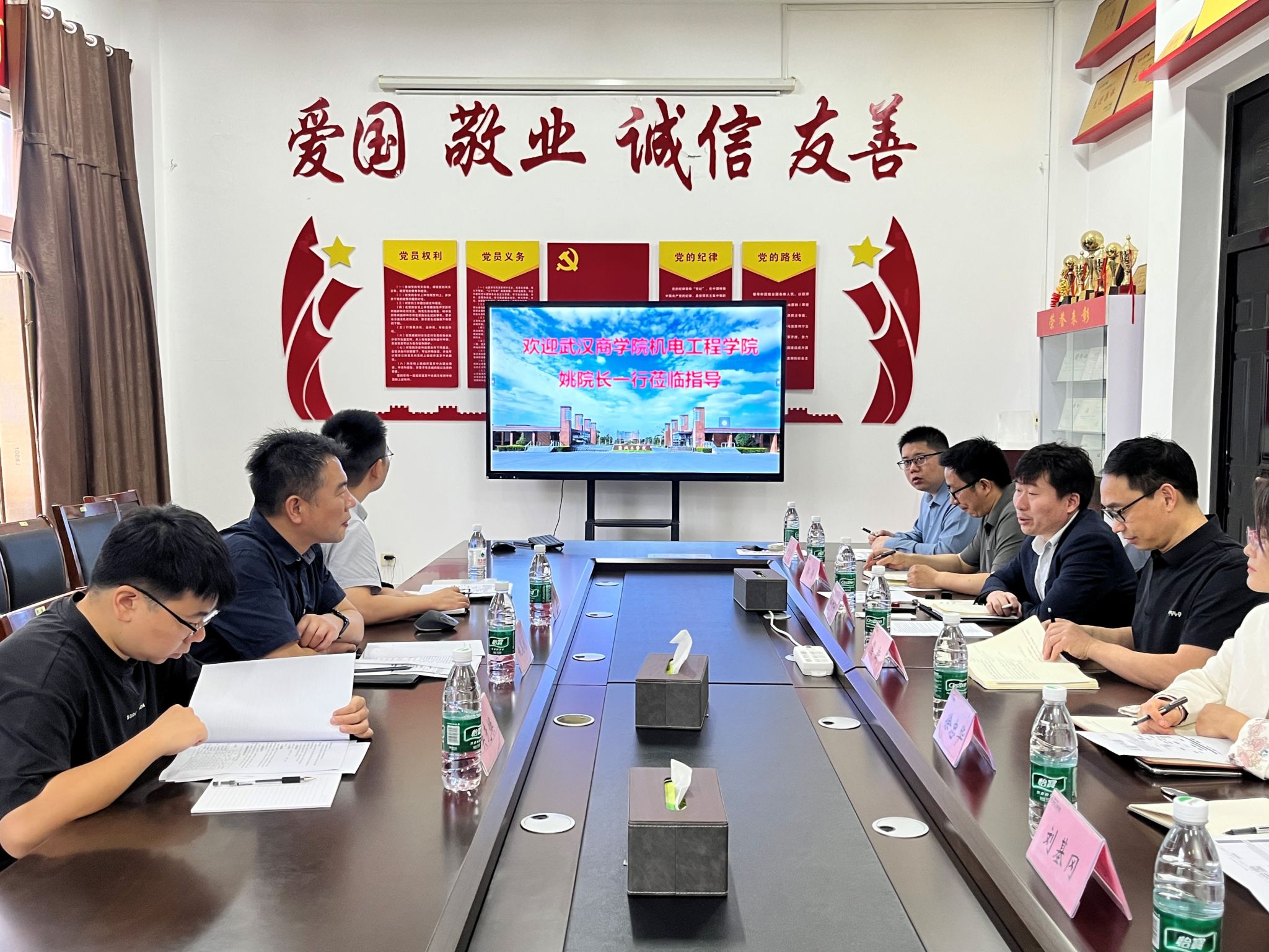 姚层林院长详细介绍了武汉商学院机电工程学院的发展历程及规划,并介绍新能源汽车工程专业建设方面的总体思路、改革举措。他指出,新能源汽车产业是国家战略性新兴产业,专业人才培养须紧贴行业发展需求,不断推进课程内容与岗位能力对接,强化多维度协同育人机制。他表示,希望今后双方能够持续深化合作,共同推动新能源汽车工程专业高质量发展。随后,姚院长一行参观了我院智能网联实验室。