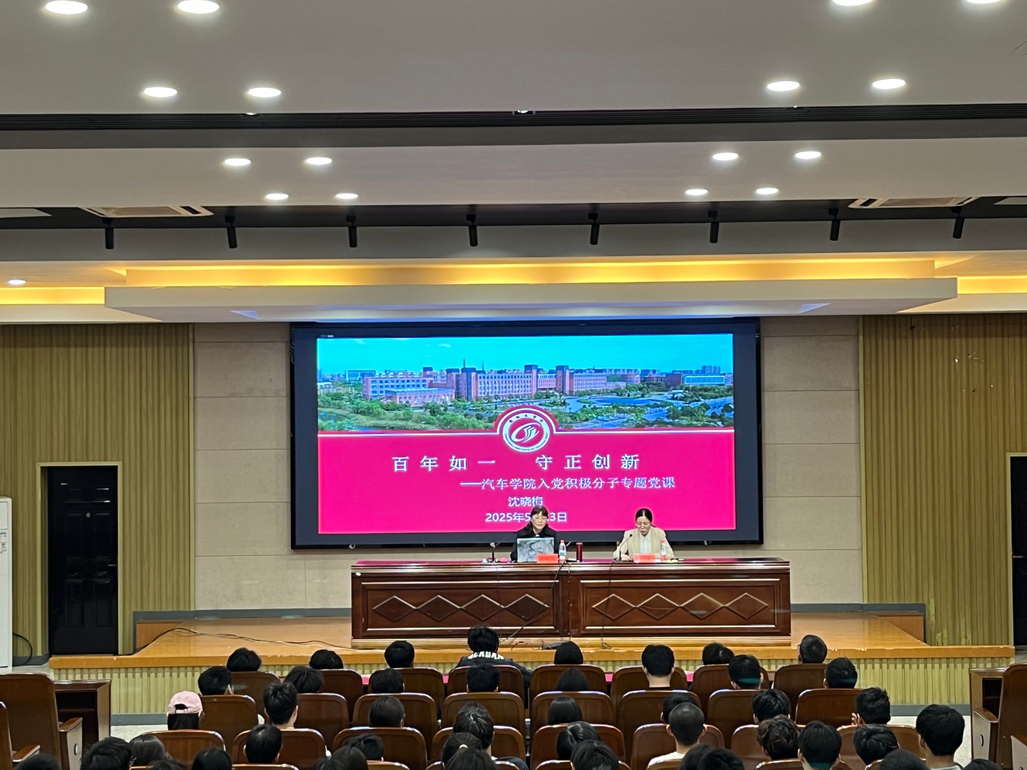 为深入学习贯彻习近平新时代中国特色社会主义思想,切实提升入党积极分子的政治素养与专业使命感,5月23号下午,汽车工程学院在机械馆报告厅举办2025年春学期入党积极分子培训班,校机关党委书记、党委组织部副部长沈晓梅担任主讲教师,学院入党积极分子及菁英班部分学员参加。培训班由学院党总支书记陈青主持。