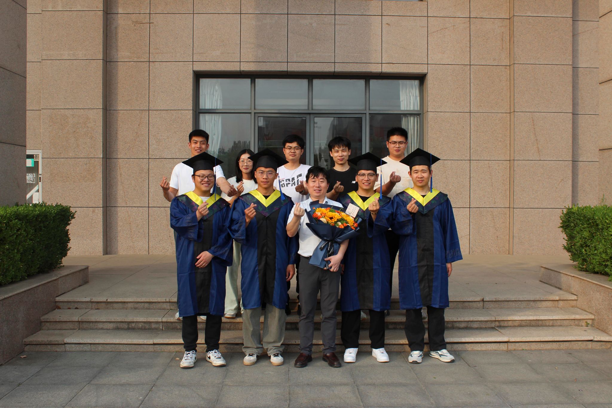 在离别的脚步临近之际,“定格时光·感恩有你”师生合影活动在学院楼前、标志性建筑等地温馨开展。身着学位服的毕业生们纷纷邀请陪伴自己成长的老师、朝夕相处的同窗好友,在镜头前留下最灿烂的笑容。课堂上谆谆教诲的老师,此刻化身亲切的家人和朋友,与学生们并肩而立,用一张张合影凝固了亦师亦友的珍贵情谊。快门按下的瞬间,定格的是青春的笑脸,更是大学四年共同奋斗、教学相长的美好见证。这些珍贵的照片,将成为毕业生们行囊中最温情的纪念品,承载着学院大家庭的温暖与祝福。
