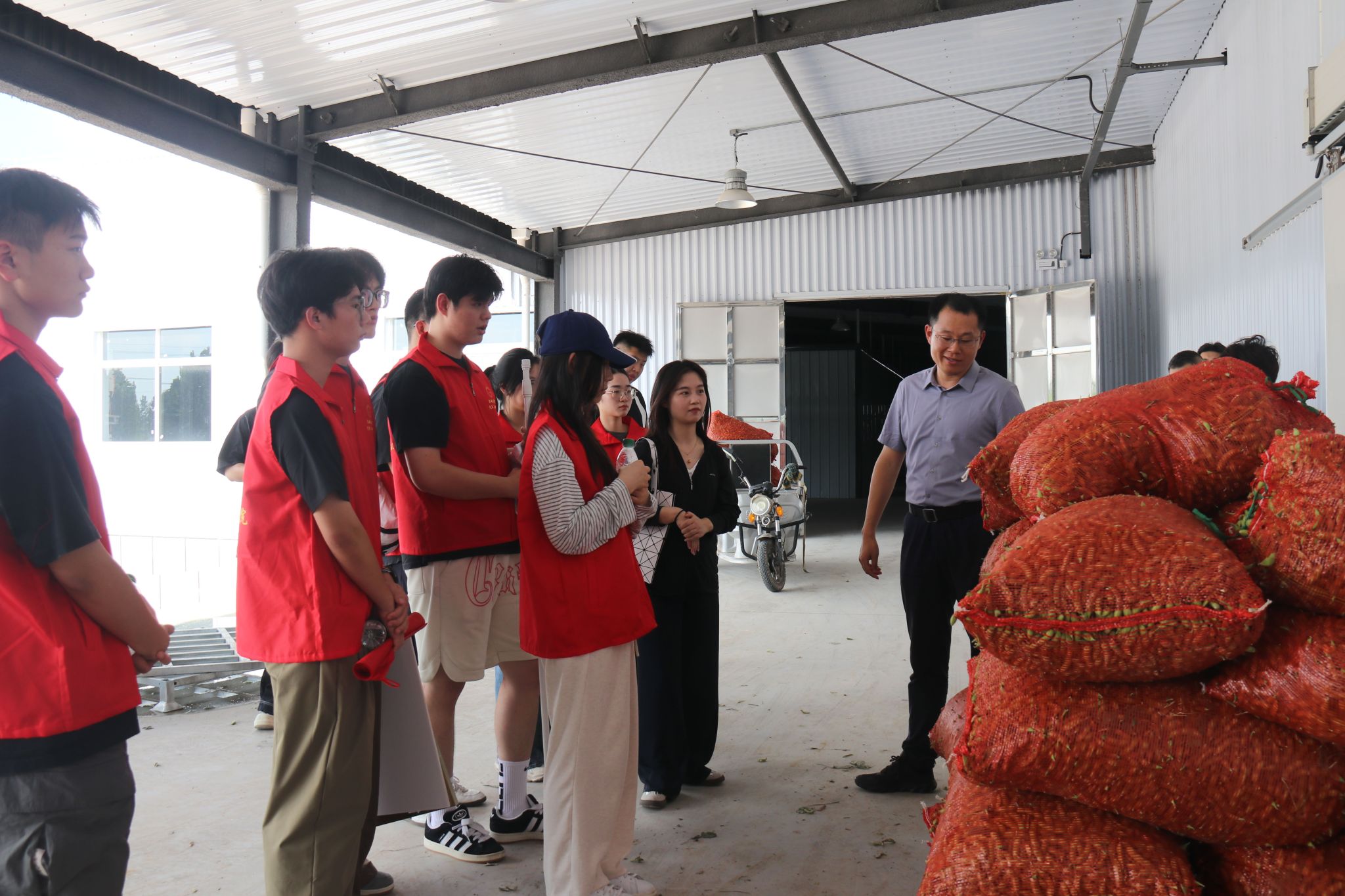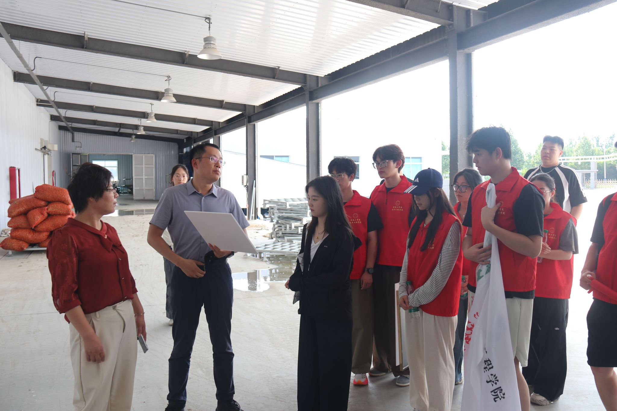 “青禾聚力”实践团实地考察黄圩镇结球生菜产业化基地。黄圩镇副镇长裴迅介绍,该基地紧扣发展乡村特色产业的号召,创新构建“订单化种植+高效轮作”模式,通过“一年两茬生菜一茬毛豆”种植循环,实现土地利用率与经济效益双提升。目前,基地已辐射带动周边5个村居参与规模化种植,依托“企业+合作社+农户”联结机制,带动季节用工200余人次,村集体年增收达50万元。裴迅表示,随着保鲜冷库的正式投用,该基地将形成集种植、加工、冷链、出口一体的全产业链闭环,助力黄河故道片区打造特色农业产业集群,为乡村产业振兴提供可持续的发展范式。