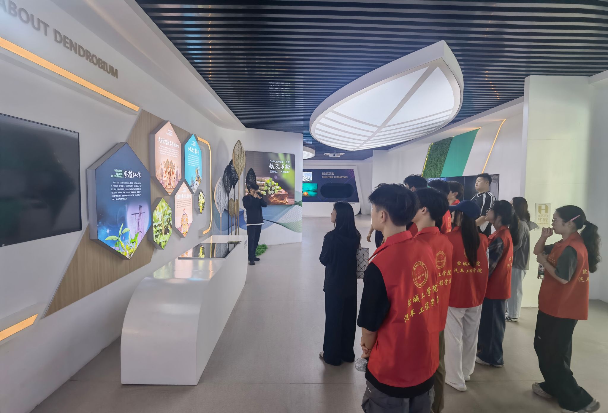 为抢抓铁皮石斛成功进入国家“食药物质”目录的重大机遇,黄圩镇依托区位优势,加快实施铁皮石斛特色小镇建设,实现科技成果转化和农文旅深度融合赋能石斛产业发展。在江苏云梯仙草科技有限公司铁皮石斛种植基地,实践团详细了解铁皮石斛的悠久历史、药用价值、市场发展前景、种植规模等。裴迅介绍,目前铁皮石斛种植基地已突破了多项技术瓶颈,拥有40多项专利,其中有8项发明专利,在规模种植、智慧种植、仿野生种植上取得显著成效。同时该基地联合高校科研团队开展石斛产品深加工,成功开发石斛粉、代用茶等“药食同源”产品,并借助电商平台拓展全国市场,以“石斛+”为纽带,延展产业链、提升价值链,全力打造生态良好、产业兴旺、百姓富裕的黄河故道生态富民廊道。