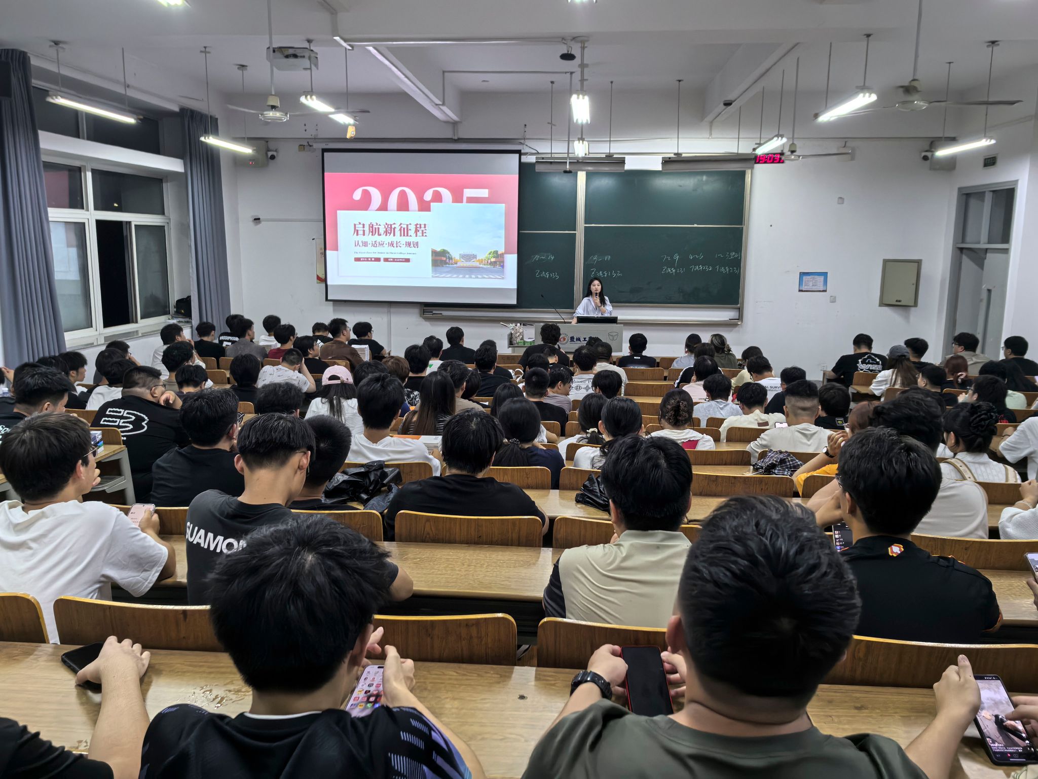 为更好引导2025年入学新生顺利完成角色转变、快速融入大学生活,9月6日晚,汽车工程学院在博学楼召开2025年新生入学教育主题班会,各班辅导员主持班会,2025年入学的16个班级参加。