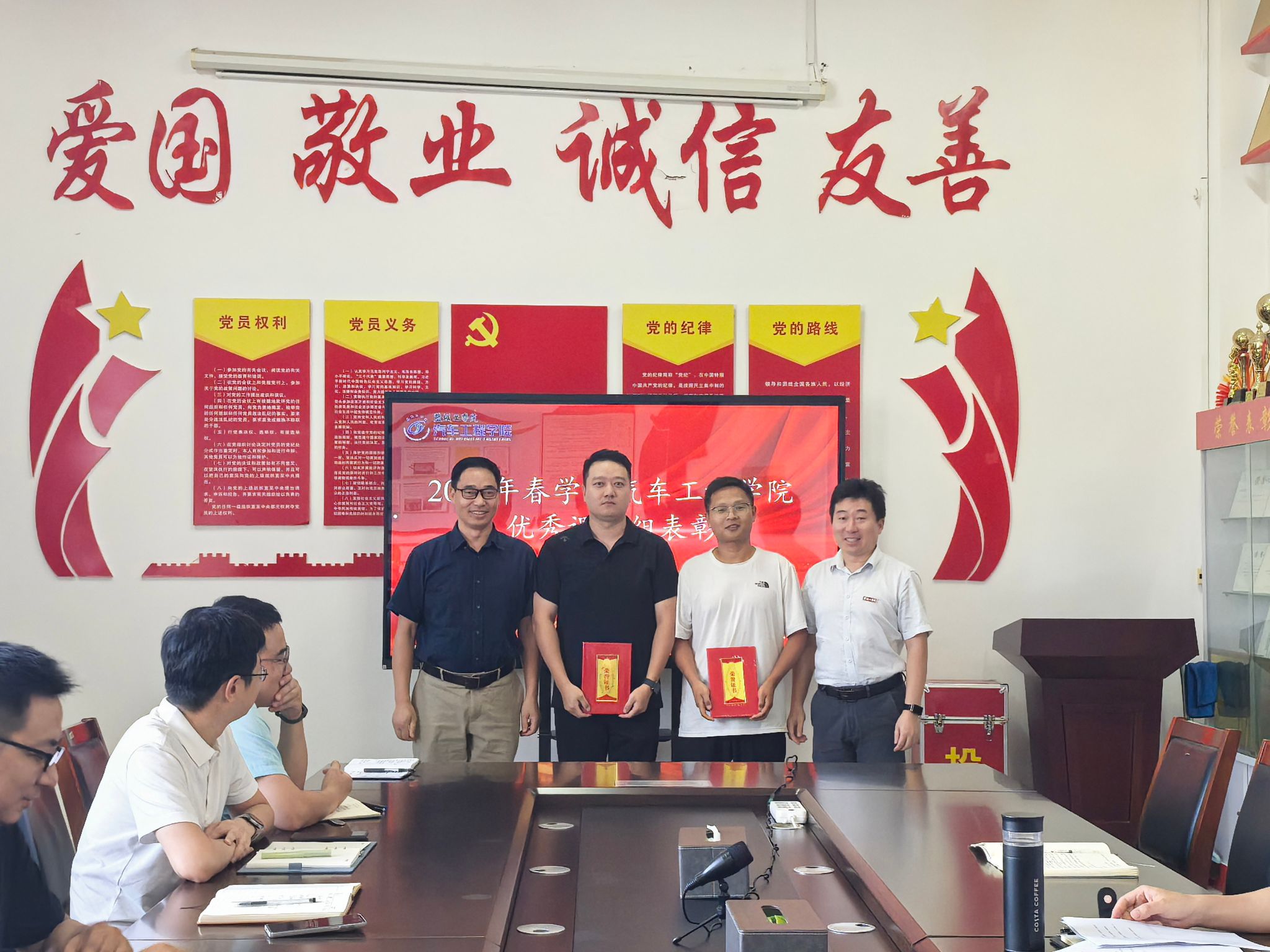 在表彰环节,院长刘玮从课程总评、学生评教、督导听课、教学材料检查四个维度,分别给出表现较好的课程组进行综合考核。最终学院决定对制图课程组和试验课程组进行表彰,副院长熊新与郑竹安为获得2025年春学期优秀课程组进行颁奖。