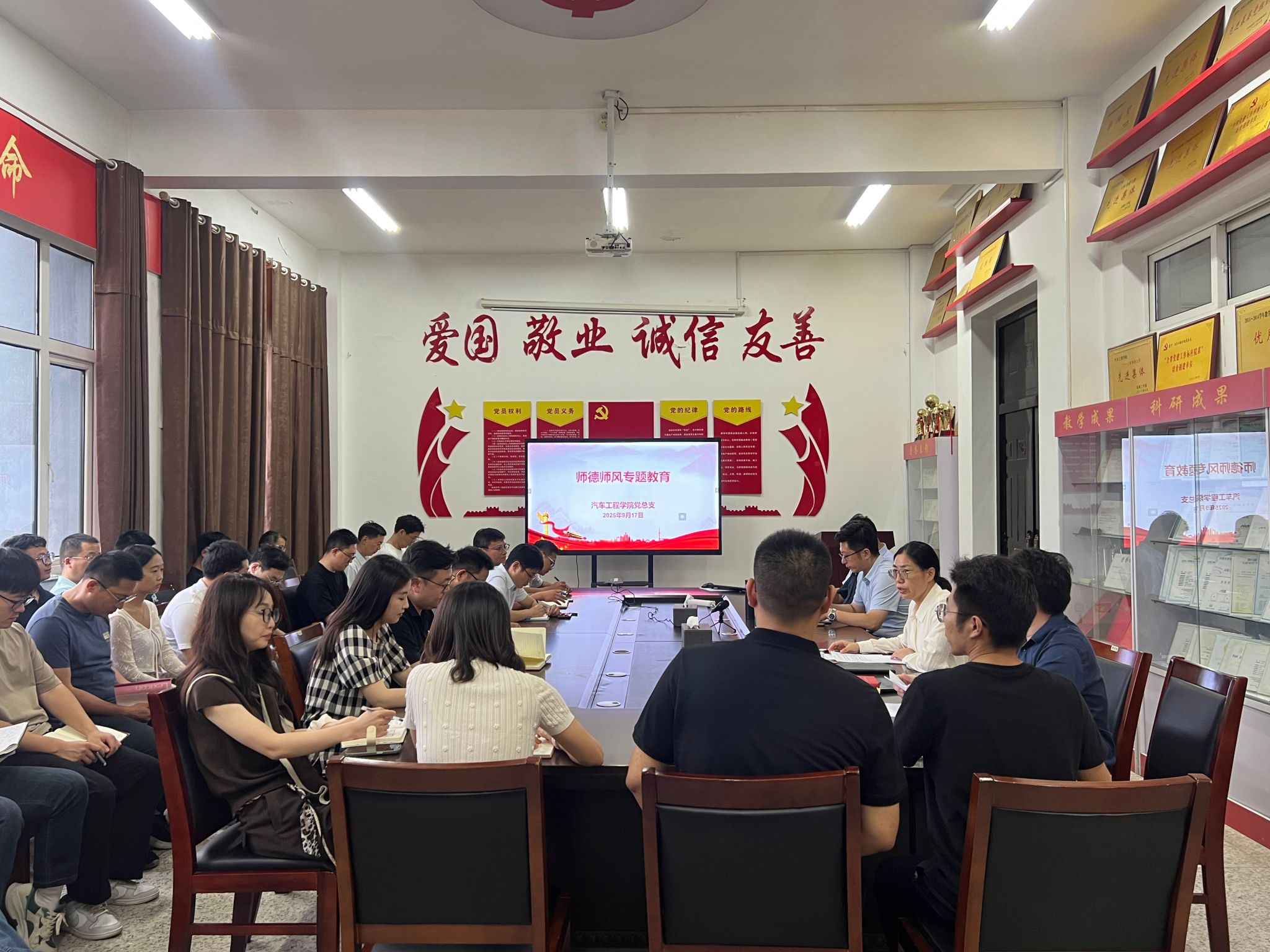 为加强师德师风建设,营造良好的教育教学环境,9月17日下午,在希望大道校区机械馆A323,汽车工程学院开展师德师风专题教育。会议由学院党总支书记陈青主持,学院全体教职工参会。