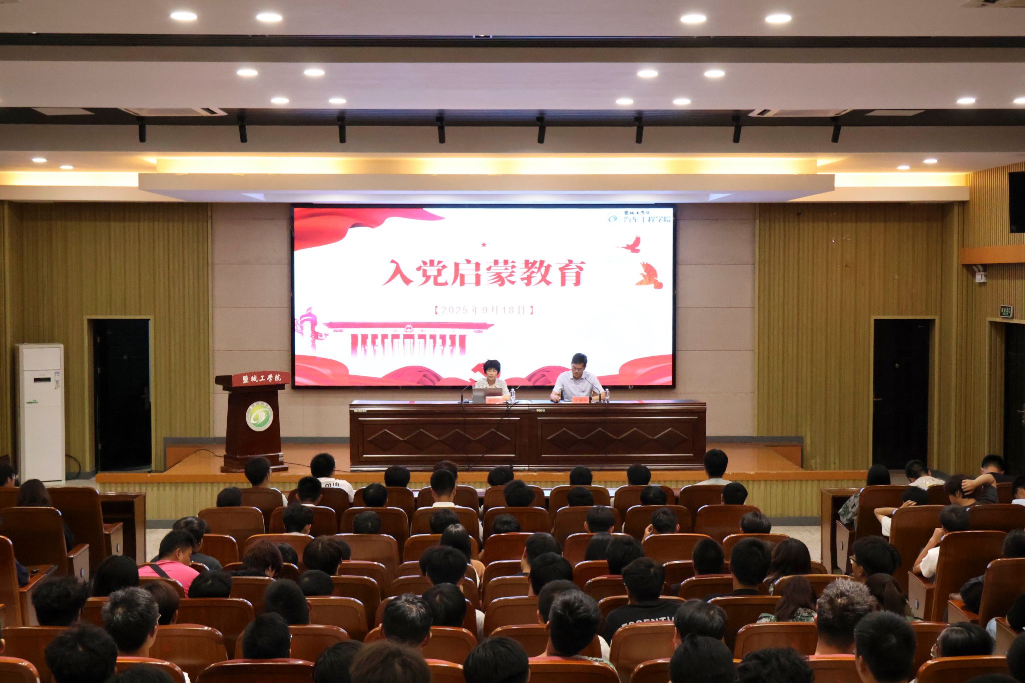 为加深新生对党的历史、宗旨与使命的理解,夯实优秀青年党员培养基础,9月18日晚,汽车工程学院联合“云泉”一站式社区于机械馆报告厅举办2025级新生入党启蒙教育暨“信仰公开课”系列活动。讲座由学院原党总支书记朱龙英主讲,党总支副书记丁德惠主持,新生辅导员及全体2025级新生参加。