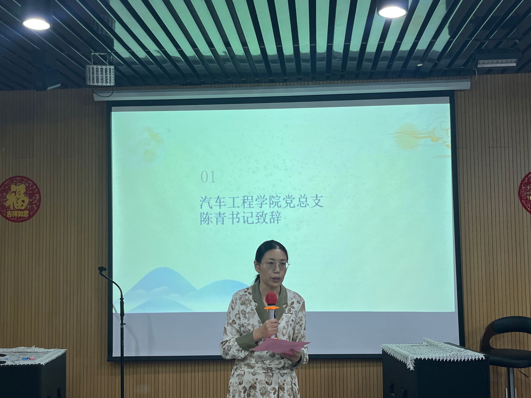 陈青书记代表学院向全体学生致以节日问候和美好祝福,她指出双节相遇更凸显“中华民族一家亲”的深刻内涵,在汽车工程学院大家庭中,各民族同学应如石榴籽般紧密相连,共同学习、共同成长,铸牢中华民族共同体意识。希望同学们围绕“我想成为什么样的人”的个人成长规划,担负“强国一代”使命,将来为祖国建设贡献自己的青春和力量。
