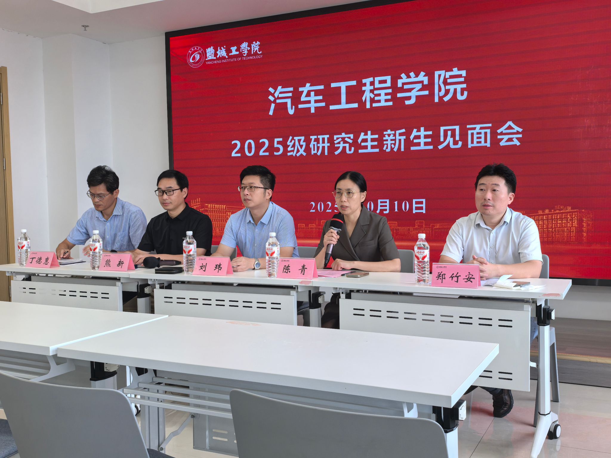 汽车工程学院于2025年10月10日在盐龙湖校区429教室组织召开2025级研究生新生见面会。会议由汽车工程学院党总支书记陈青主持,院长刘玮、副院长熊新、党委副书记丁德惠、副院长郑竹安、新能源汽车系主任郭俊、教师代表李玉娇、研究生秘书刘宝坤、研究生辅导员王威力、范景森及2025级全体研究生新生参会。
