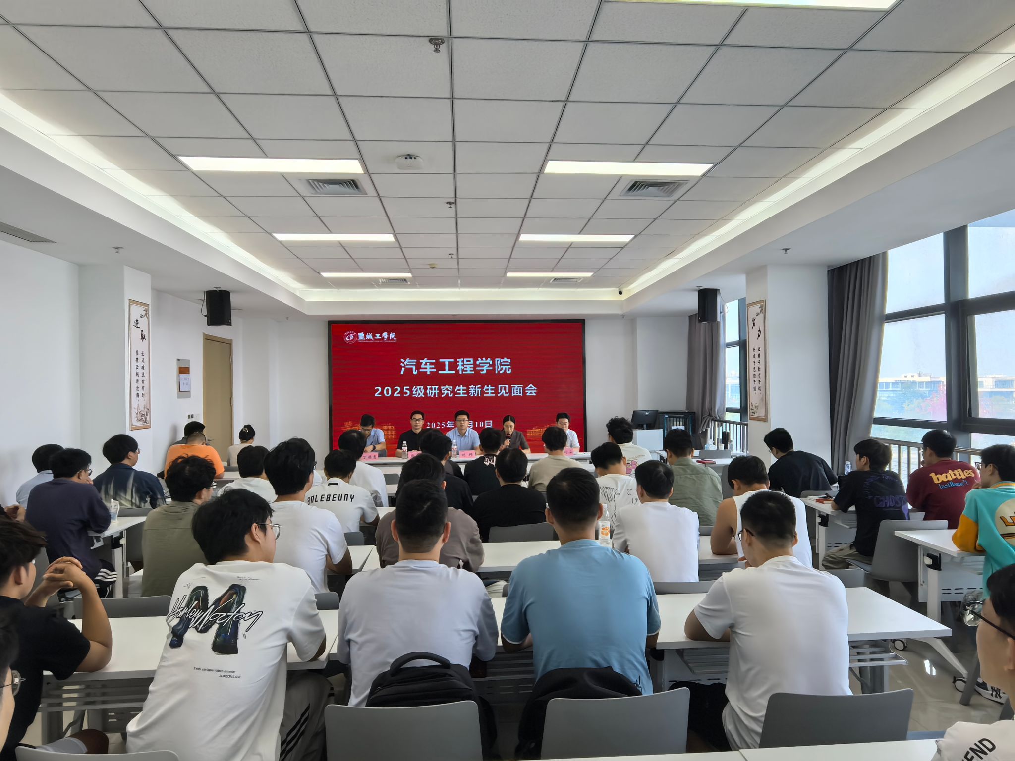 汽车工程学院于2025年10月10日在盐龙湖校区429教室组织召开2025级研究生新生见面会。会议由汽车工程学院党总支书记陈青主持,院长刘玮、副院长熊新、党总支副书记丁德惠、副院长郑竹安、新能源汽车工程专业系主任郭俊、教师代表李玉娇、研究生秘书刘宝坤、研究生辅导员王威力、范景森及2025级全体研究生新生参会。
