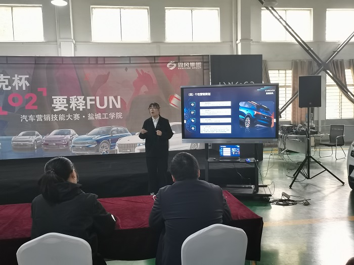 11月17日下午一点,为培养学生实践能力,提高创新思维和团队意识,汽车工程学院携手森风集团领克中心在东工培中心举办“森风领克杯”盐城工学院第二届汽车营销技能大赛。出席本次比赛的嘉宾和评委有森风集团领克市场销售总监刘飞,领克展厅经理周曙,哪吒展厅经理卞太鹏,哪吒市场经理梁亚新,汽车学院院长刘玮,教学院长郑竹安,汽车服务工程系主任汤沛,徐进教授以及来自经管学院的杨军老师。