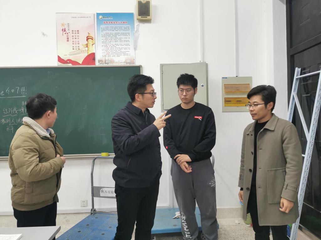为进一步加强我院学风建设,充分发挥学风建设在大学生思想政治教育工作中的核心作用,给广大学生营造良好学习氛围。11月25日晚,汽车工程学院院长刘玮、副院长熊新、郑竹安带领相关老师走进学院创新班教室、研究生工作室和大一新生自习教室,对同学们的出勤情况和学习情况进行了全面检查。