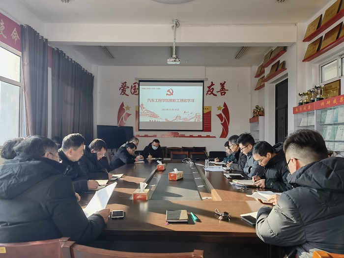 12月29日下午,在南校区机械馆A323会议室,汽车工程学院组织教职工政治理论学习。本次学习的主要内容有:中央党史学习教育总结会议精神、江苏省第十四次党代会精神。学院院长刘玮主持会议,全体教职工参加本次学习活动。