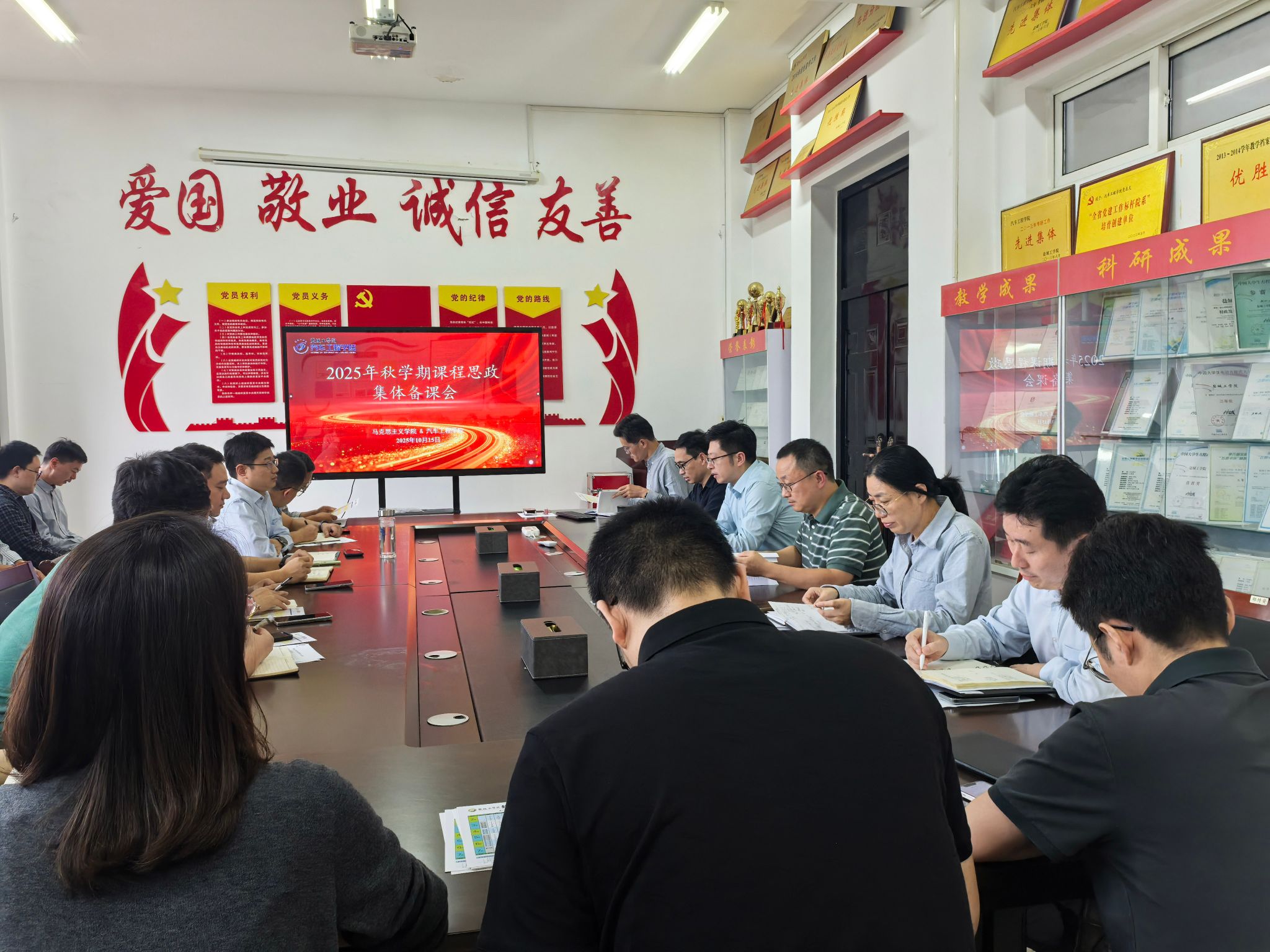 2025年10月15日下午,汽车工程学院邀请马克思主义学院德法教研部郁海波主任在机械馆A323会议室开展课程思政集体备课会。共同探讨如何将课程思政内容巧妙融入课程教学中,会议由院长刘玮主持,学院全体教师参加。