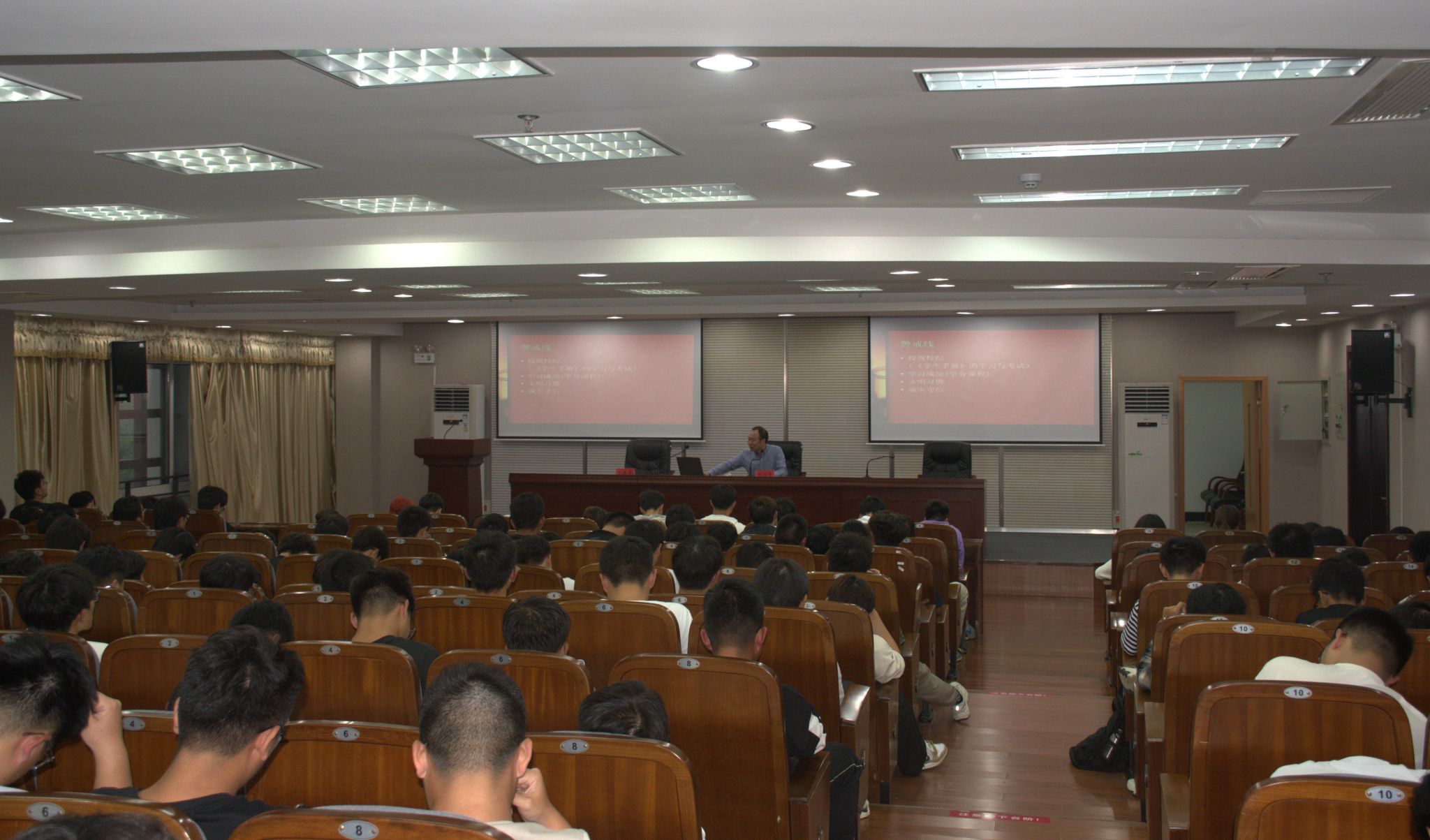 为帮助2025级新生加深专业了解、明确发展方向,提升对大学生活与学习的认知,10月15日下午,汽车工程学院在南校区图书馆报告厅举办2025级新生职业生涯规划教育讲座,校人事处周临震处长主讲,学院党总支副书记丁德惠主持,2025级新生参加。