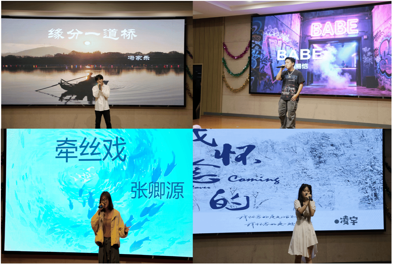 随着灯光渐亮,JDC舞社的开场舞瞬间点燃全场热情。16名选手依次登台,展现出了极强的音乐创造力与表现力,带来了丰富多样的歌曲元素。有选手用节奏感十足的 RAP,将青春里的热血与不羁表达得淋漓尽致,快速的语速与有力的咬字,让现场氛围再次升温;有选手选择英文歌曲,地道的发音与深情的演绎,展现出国际化的音乐视野;还有选手融入独特的戏腔,婉转悠扬的腔调与现代音乐完美融合,既传递出传统文化的韵味,又彰显了青春的创新精神;更有选手带来自作曲作品,旋律动人,歌词真挚,将自己的青春感悟与梦想追求融入其中,赢得了台下观众的阵阵喝彩。经过激烈角逐,冯家乐同学凭借极具穿透力的嗓音和卓越的舞台表现力,斩获“十佳歌手”比赛一等奖,钱易恺等3名同学获二等奖,周闽等6名同学获三等奖。比赛评委们为获奖选手颁发荣誉证书,并鼓励全体学子在追求专业知识的同时,保持对艺术与生活的热爱,用青春活力为校园文化注入更多精彩。