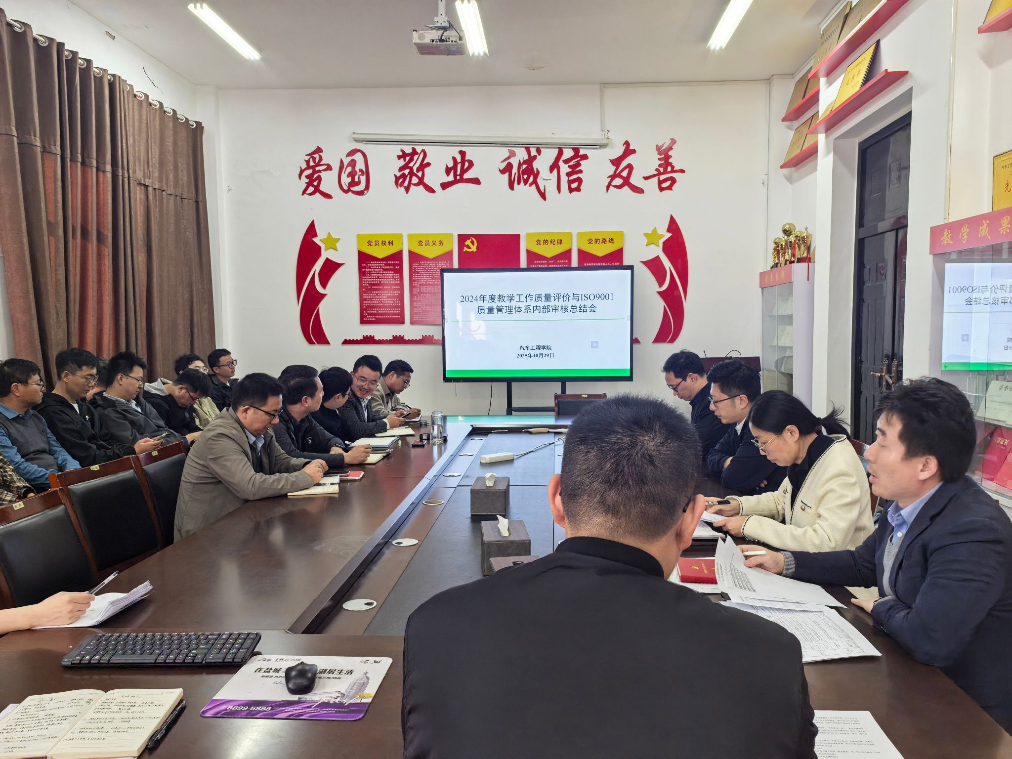 为深入贯彻落实立德树人根本任务,系统检验教学管理质量运行水平,10月29日下午,汽车工学院在机械馆A323会议室召开2024年度教学工作质量评价与ISO9001质量管理体系内部审核总结会。会议由院长刘玮主持,党总支书记陈青、副院长熊新、郑竹安及全体教师参会。