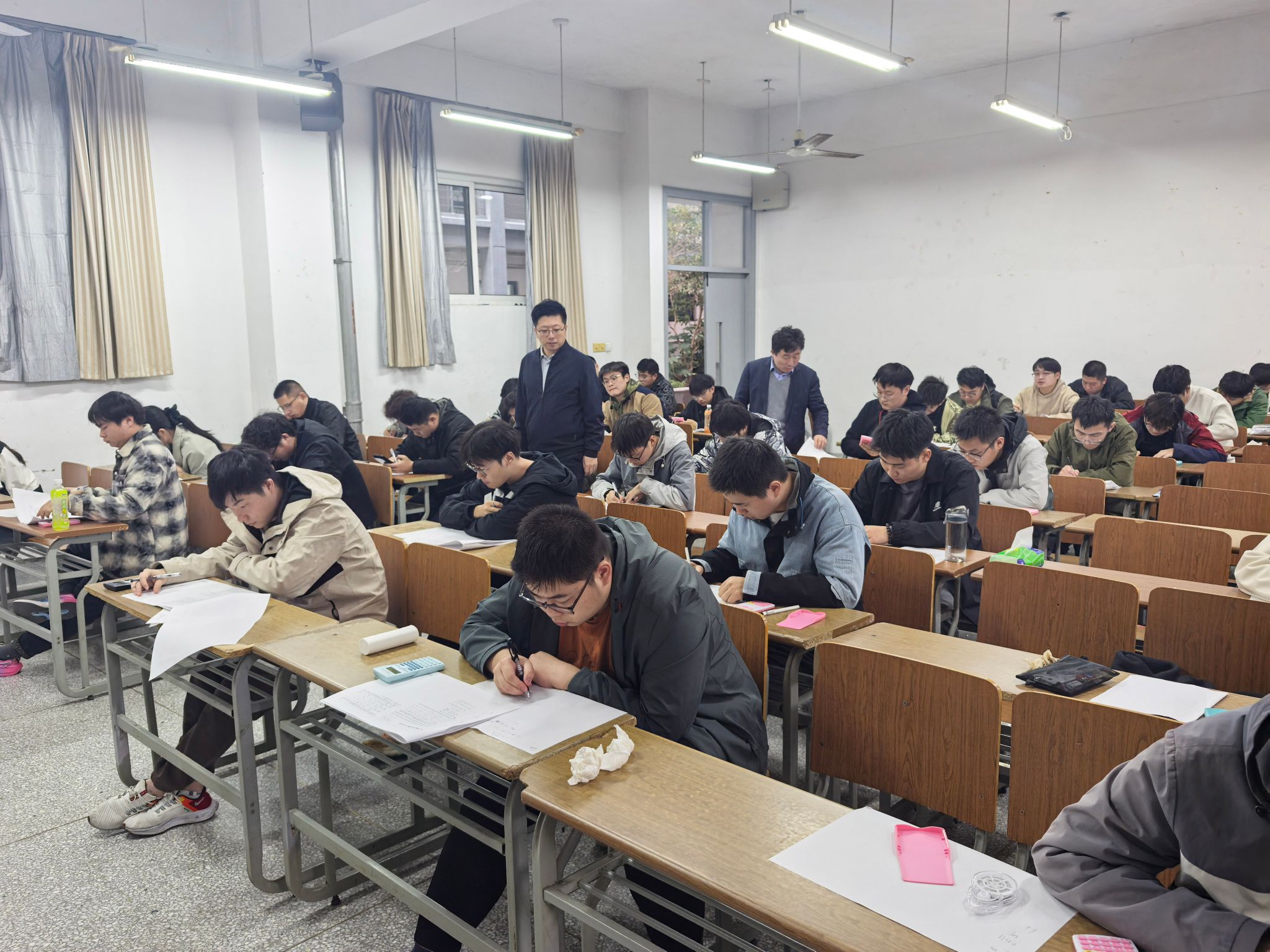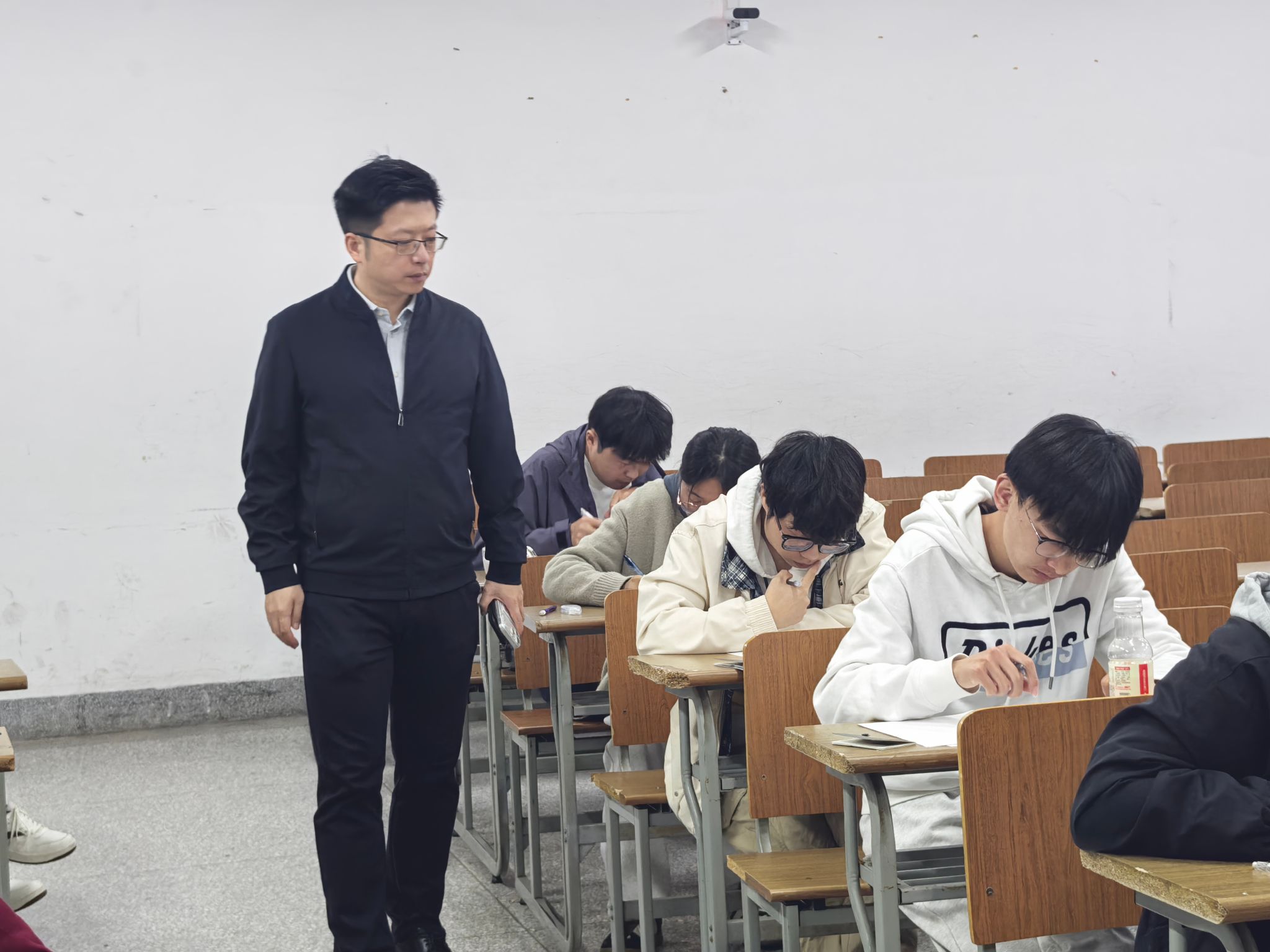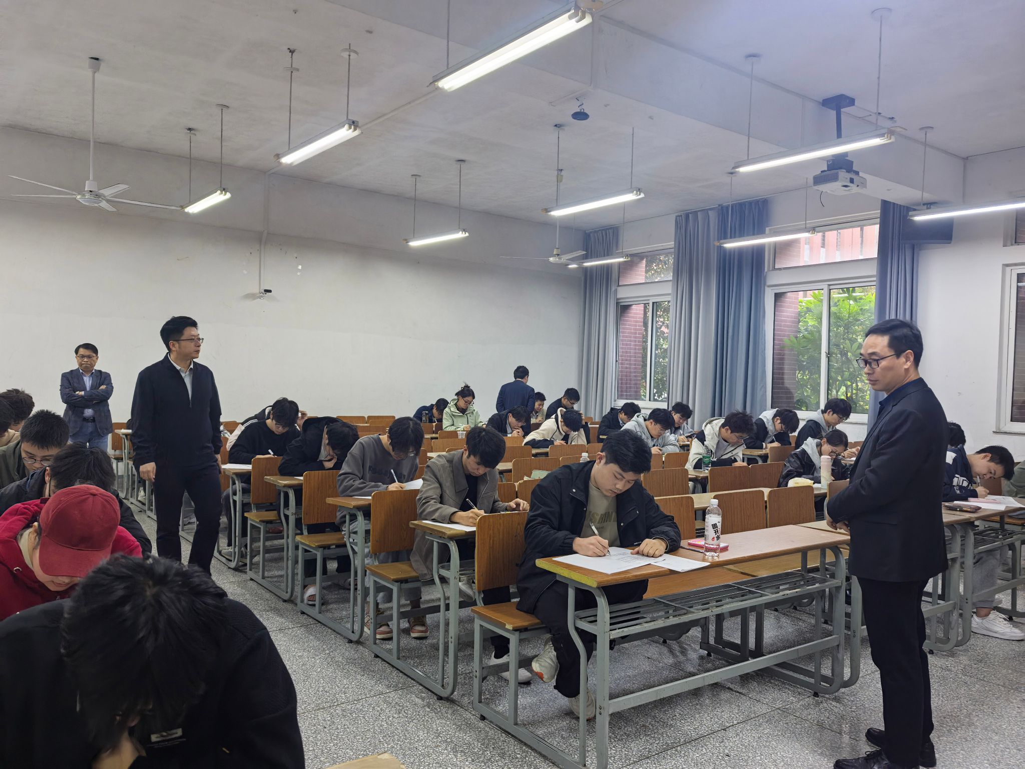 2025年10月29日下午,汽车工程学院院长刘玮、副院长熊新、郑竹安深入教学一线,在希望大道校区博学楼,巡查2025年秋学期首场期末考试,本次考试共14个考场。