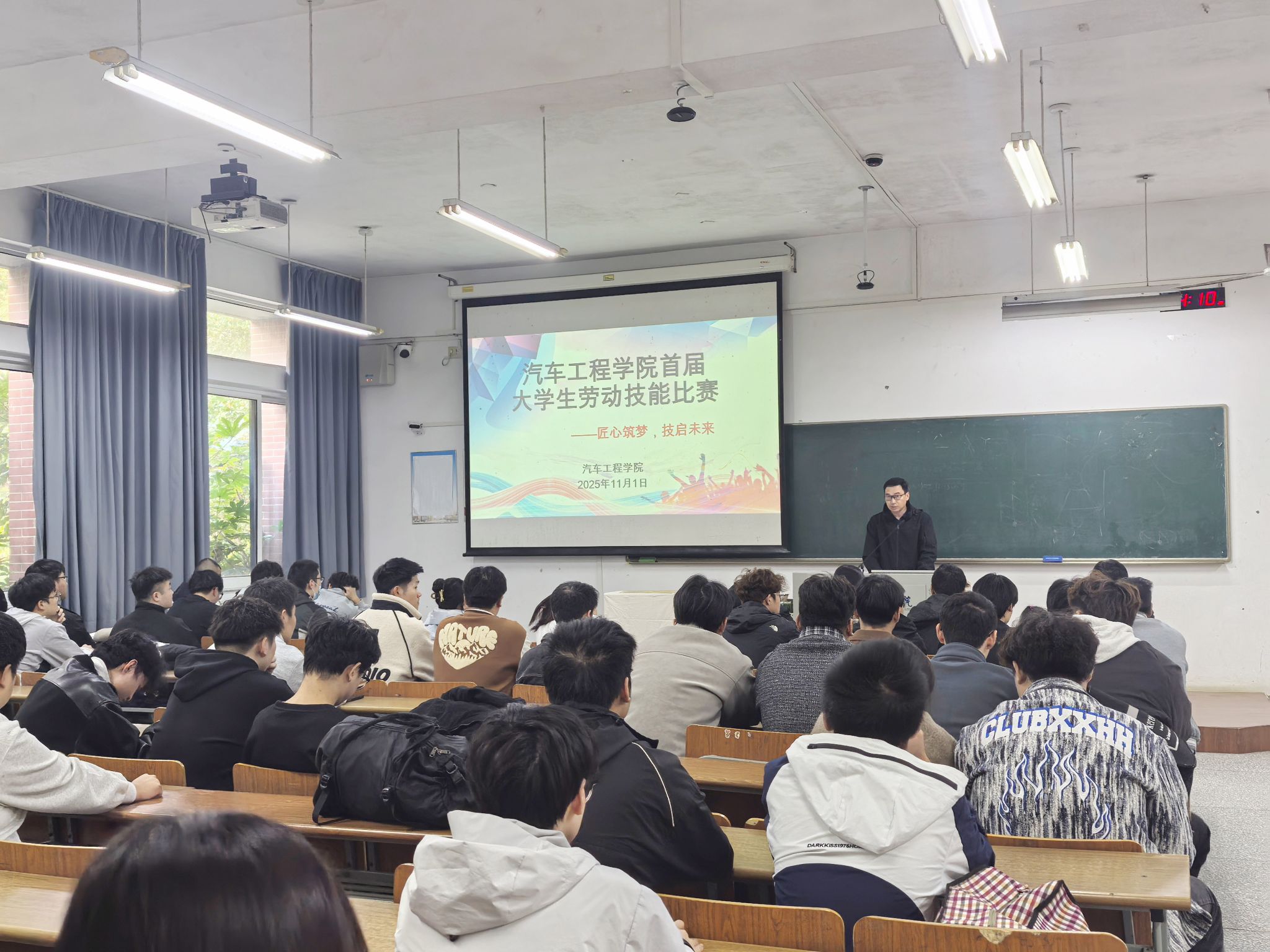 为深入推进“三全育人”“五育并举”,构建具有专业特色的劳动教育体系,2025年11月1日下午,汽车工程学院在博学楼B110、B111及机械馆A323,成功举办首届“匠心筑梦,技启未来”大学生劳动技能比赛。学院副院长熊新、党总支副书记丁德惠、评委老师及参赛学生共计400余人参加活动。