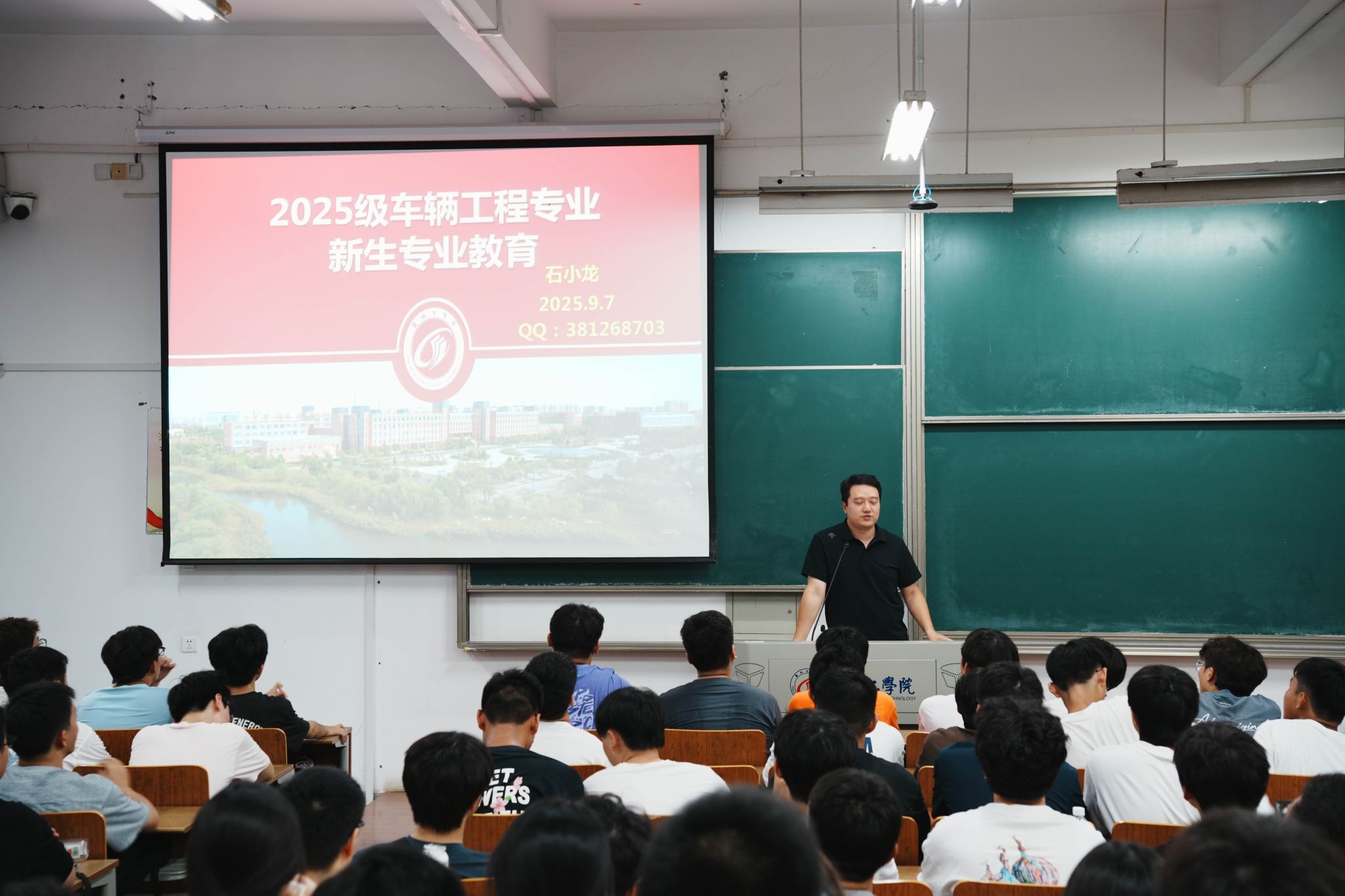 为助力新生尽快熟悉大学生活,全面了解所学专业,帮助其科学规划职业生涯,9月7日汽车工程学院车辆工程专业系在博学楼教室分别为2025年车辆工程专业普本班和国际合作班新生开展素养公开课系列活动之专业介绍会,车辆专业系系主任石小龙主讲,2025级全体车辆工程专业新生参加。