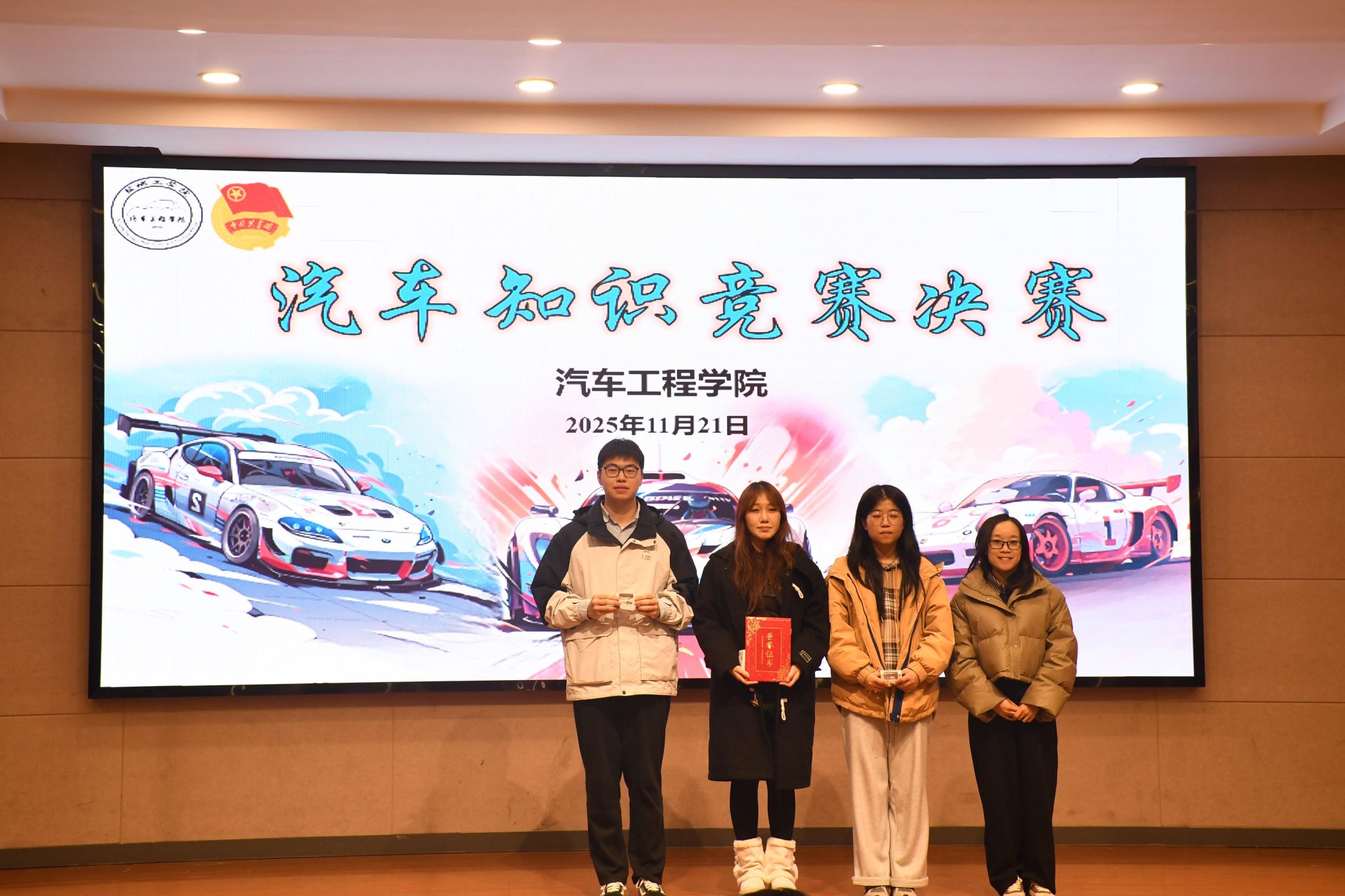 为激发学生专业学习热情,搭建技能交流与风采展示平台,11月21日晚,由校团委主办,汽车工程学院承办的第三十届校园文化艺术节子项目汽车知识竞赛在机械馆报告厅举办。汽车工程学院党总支书记陈青、校团委实践创新部主任徐潘虹、校团委组宣部主任刘亭亭、汽车工程学院学生科主任孙进担任比赛评委,200余名师生齐聚现场,共同见证了这场兼具知识性与竞技性的专业盛宴。