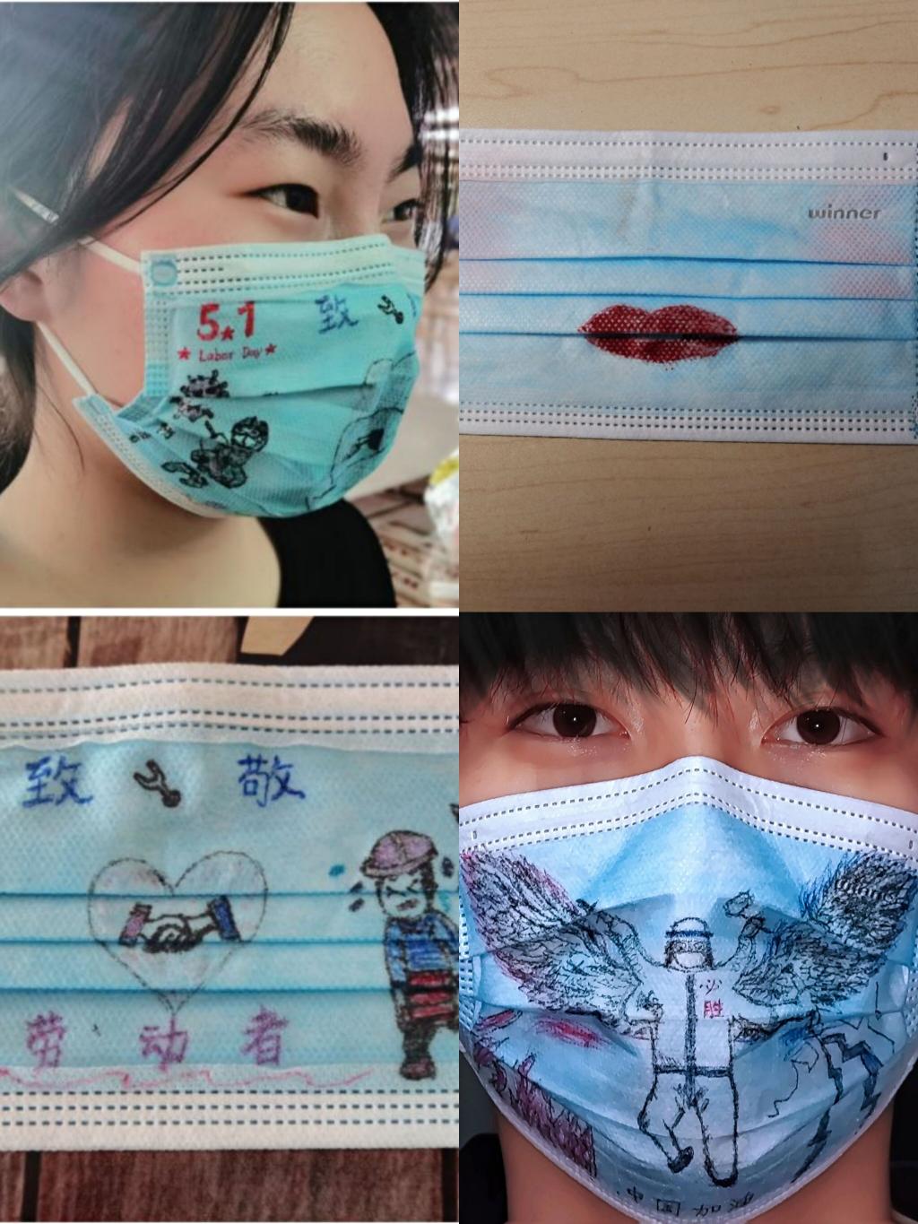 在“笔绘山河,疫濯尽散”活动中。有的同学在口罩上写上了对学校的美好祝福;还有的同学画上了我们的抗疫英雄“大白”。活动更坚定了同学们积极抗疫的决心,体现了当代大学生的责任与担当。