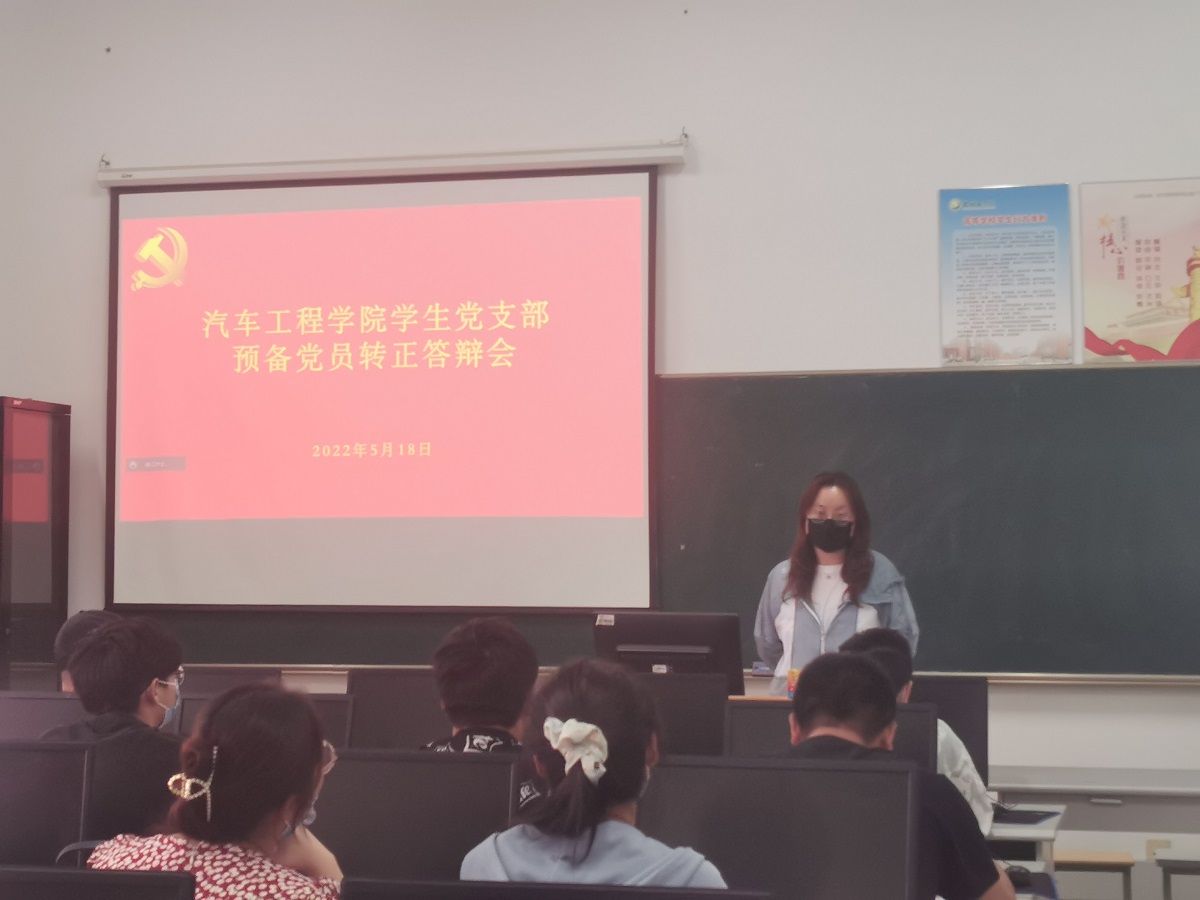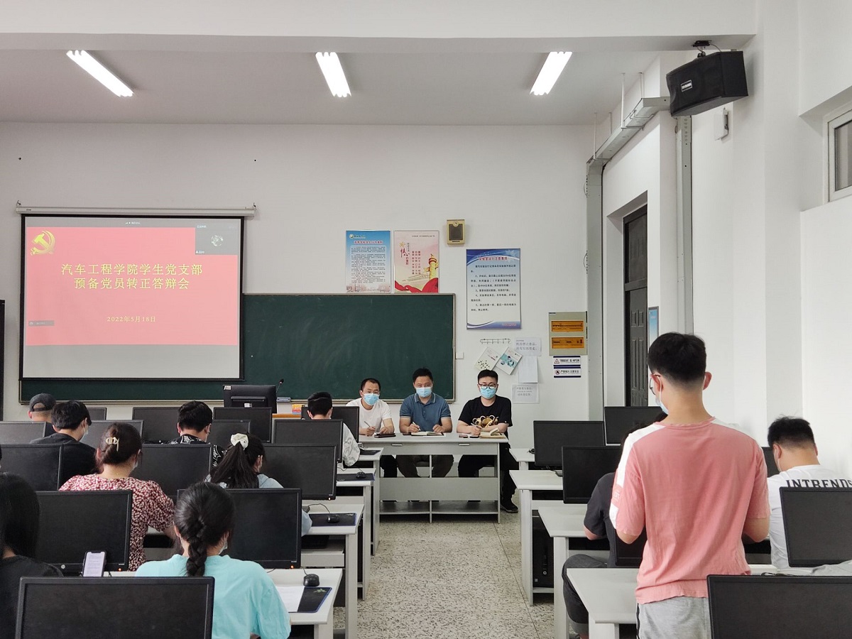 5月18日下午,汽车工程学院在机械馆B407和B412分别召开预备党员转正答辩会,学院党总支副书记姜华、学生党支部委员担任评委。答辩会分别由党总支副书记姜华和学生党支部书记孙进主持,51名本科生预备党员和1名研究生预备党员参加。