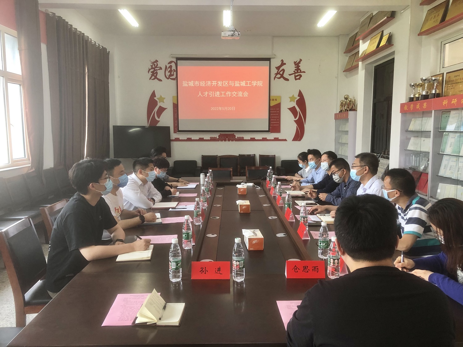 5月20日上午,盐城市经济开发区人才服务中心主任陈志殿等一行四人来我院开展人才引进工作专项交流会。电气工程学院党委书记于建业、信息工程学院党委书记王爱军、汽车工程学院党总支书记杨军、学校招生就业处就业指导科科长阎小民及各学院学生工作分管领导、老师热情接待。