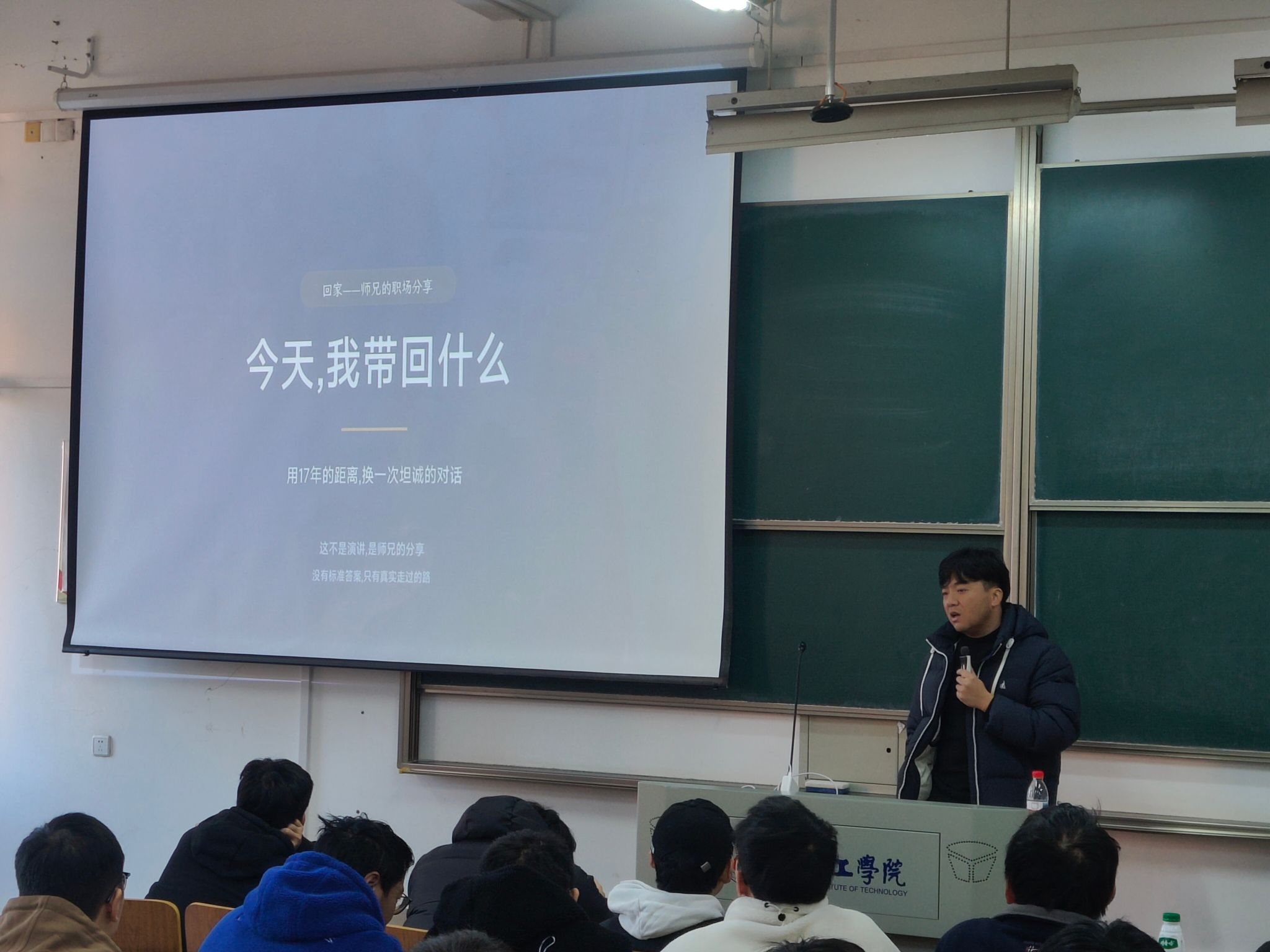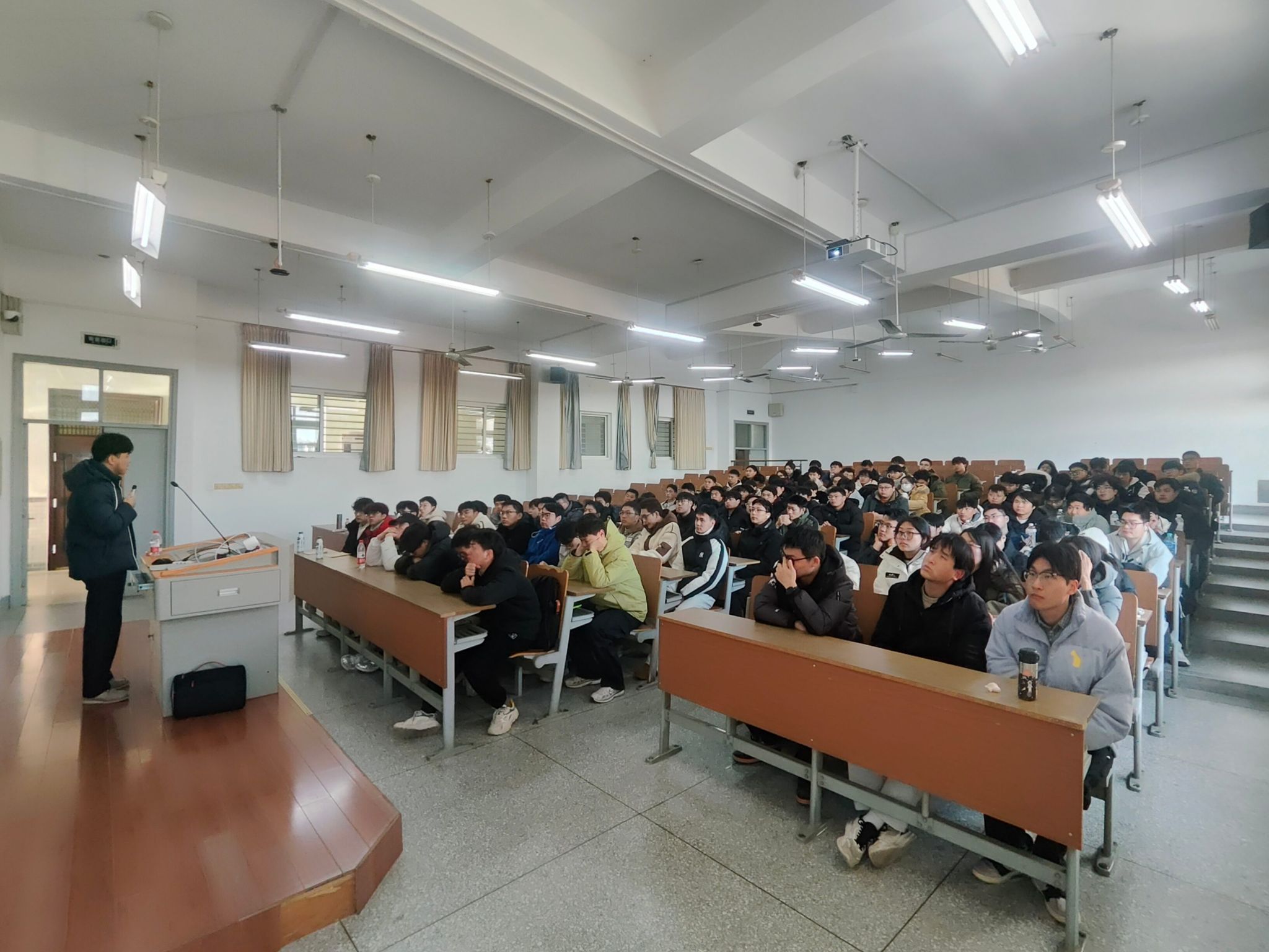 课堂上,孙海山紧扣汽车生产与质量管理全流程核心,从企业组织架构及运行流程、产品开发流程、检验与试验流程、产品业务流程、产线人流物流信息流、项目管理实务以及职场经验分享七大关键模块展开讲解。他结合自身丰富的行业实践经历,穿插大量典型案例,将抽象的理论知识转化为具象的实操要点,深入浅出地剖析了汽车生产质量管理各环节的核心逻辑与实践技巧,让学生们对行业实际运作有了更清晰的认知。
