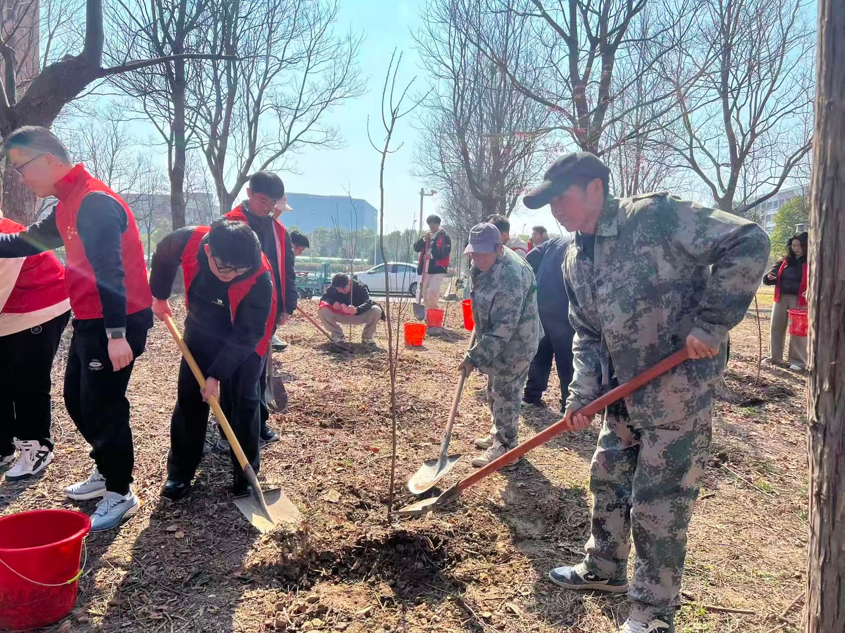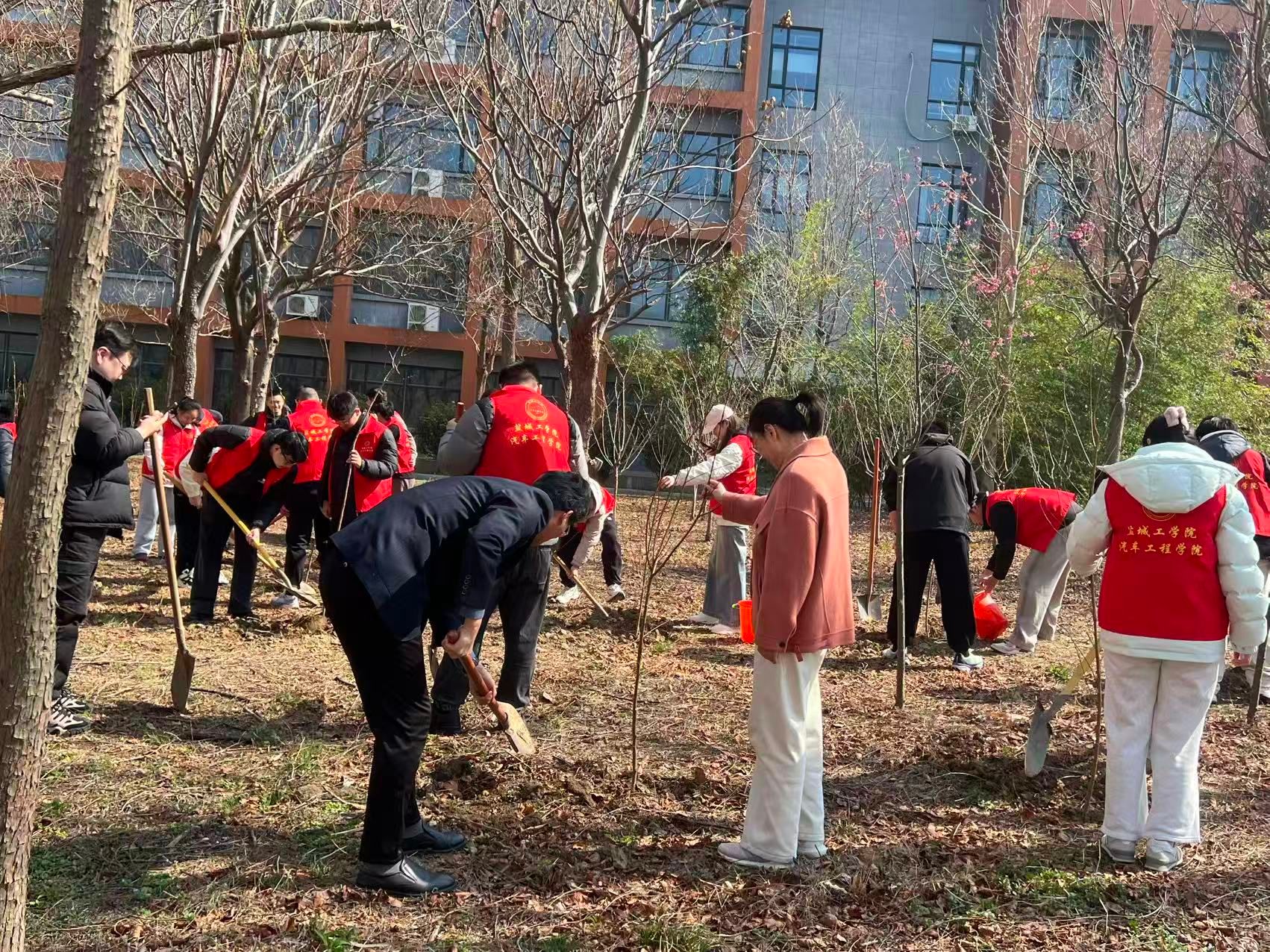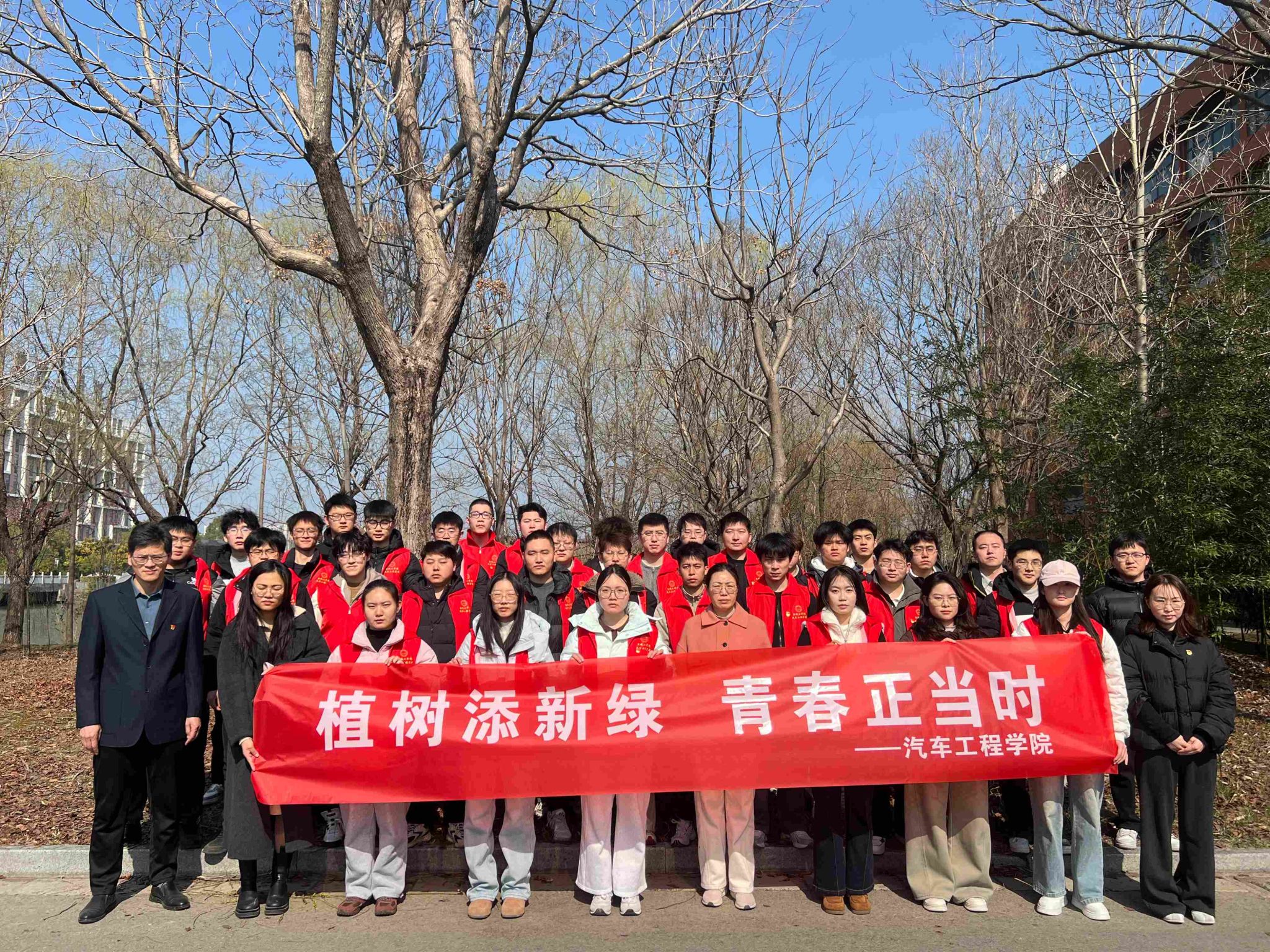 为积极践行绿色发展理念,落实劳动教育与思政教育融合要求,3月13日下午,汽车工程学院在机械馆南侧开展植树节主题实践活动,引导全院师生树立绿色环保理念、锤炼劳动实践能力,用行动践行责任担当。学院党总支书记陈青、党总支副书记丁德惠、全体辅导员、研究生及本科生党员代表、团员代表等四十余人参加活动。
