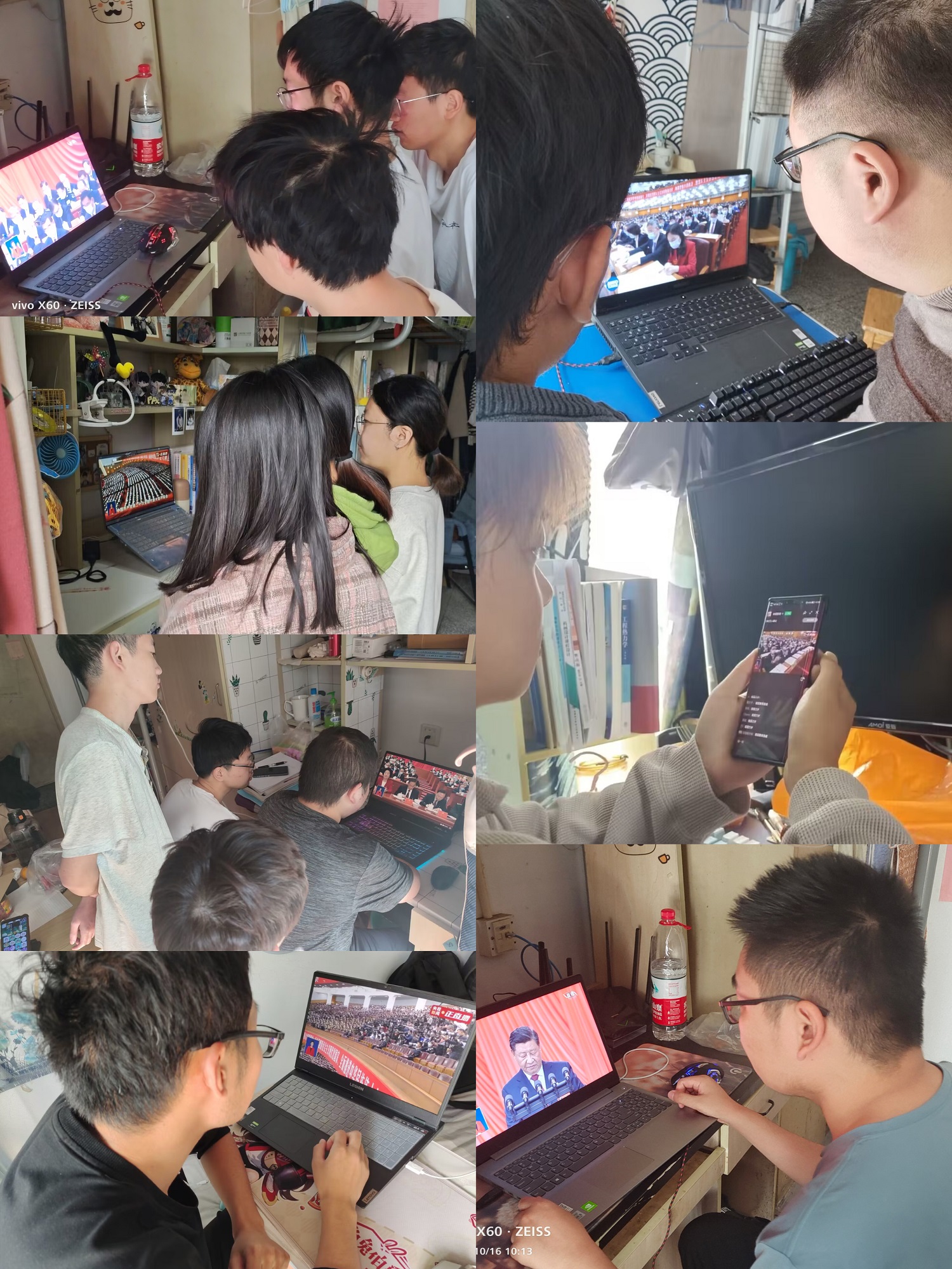 学生党员和部分团员代表在教室集中观看二十大开幕会。