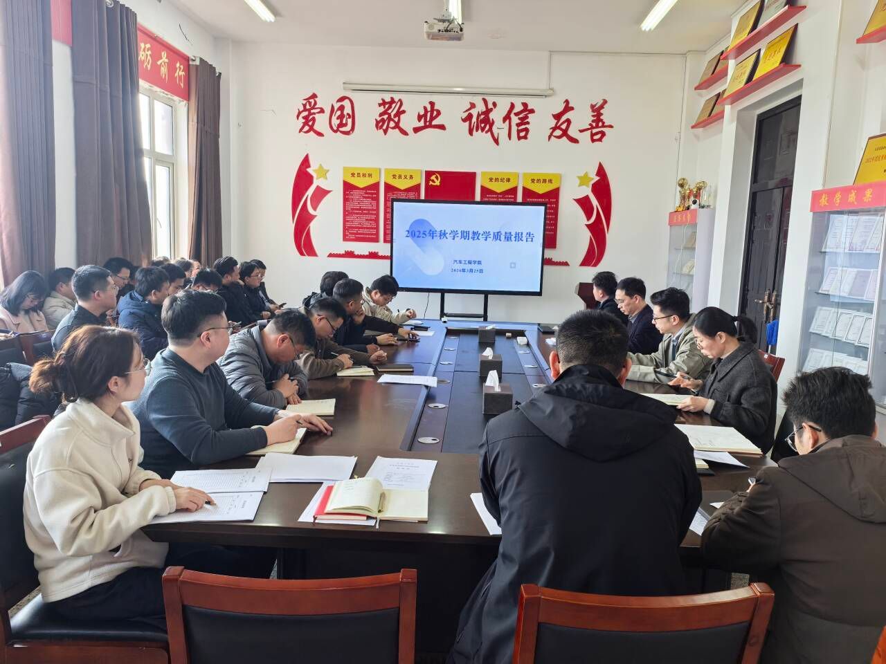 2026年3月25日,汽车工程学院在机械馆A323会议室顺利召开了2025年秋学期教学质量报告会,会议由院长刘玮主持,教学院长郑竹安作报告,全体教师共同参会。