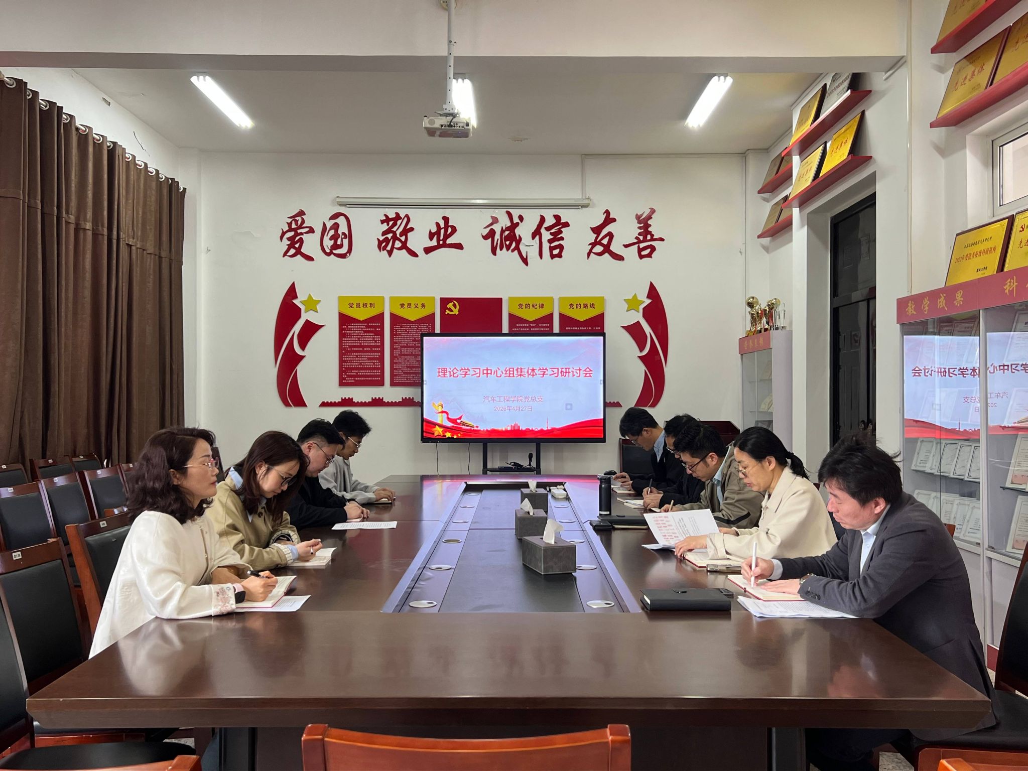 4月27日上午,汽车工程学院党总支理论学习中心组在机械馆A323会议室举行2026年春学期第二次集体学习研讨会,深入学习《习近平总书记地方工作期间坚持正确政绩观生动实践》《总体国家安全观学习纲要》《中华人民共和国网络安全法》《中华人民共和国保守国家秘密法》。会议由党总支书记陈青主持,党总支理论学习中心组全体成员参加。