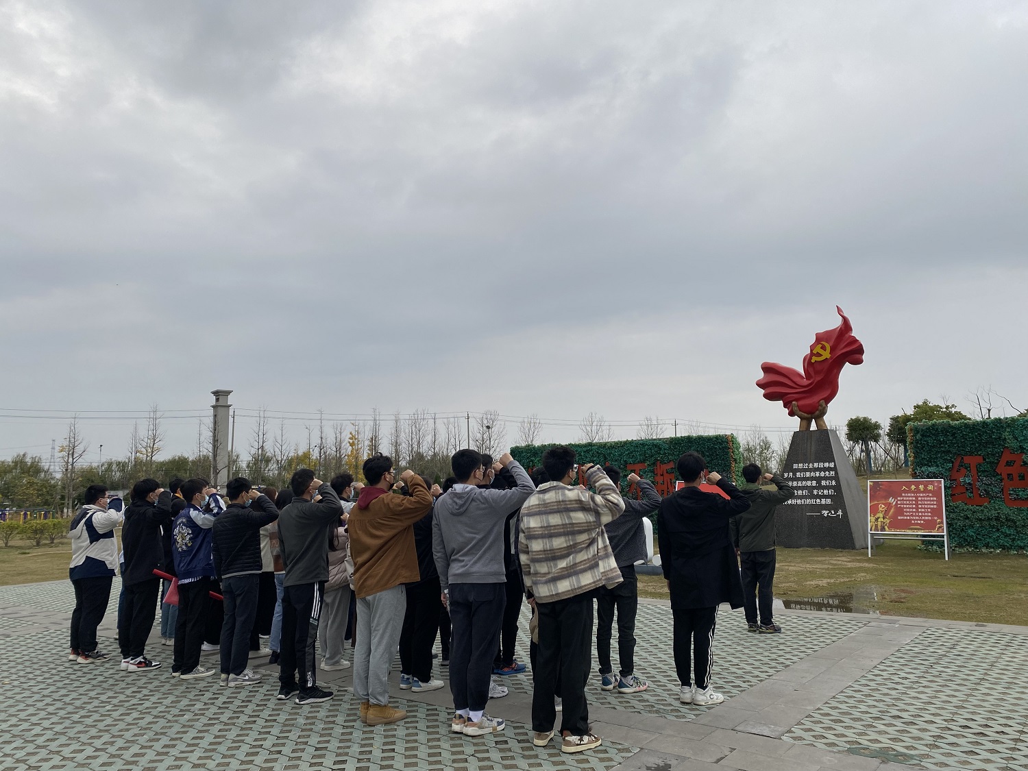 首先,桂英村党总支书记柏林春对大家的到来表示欢迎,希望同学们认真学习革命英烈无私奉献的崇高精神,继承先烈遗志、树立远大志向。随后,全体党员参观了“刘桂英烈士生平事迹陈列室”,陈列室展示了烈士们所处年代的物品,在讲解员的讲述下,大家认真学习了刘桂英、陈祝根等革命烈士的英勇事迹,对革命烈士视死如归的大无畏精神肃然起敬。最后,在桂英村9.30广场,全体党员重温入党誓词,接受精神洗礼。